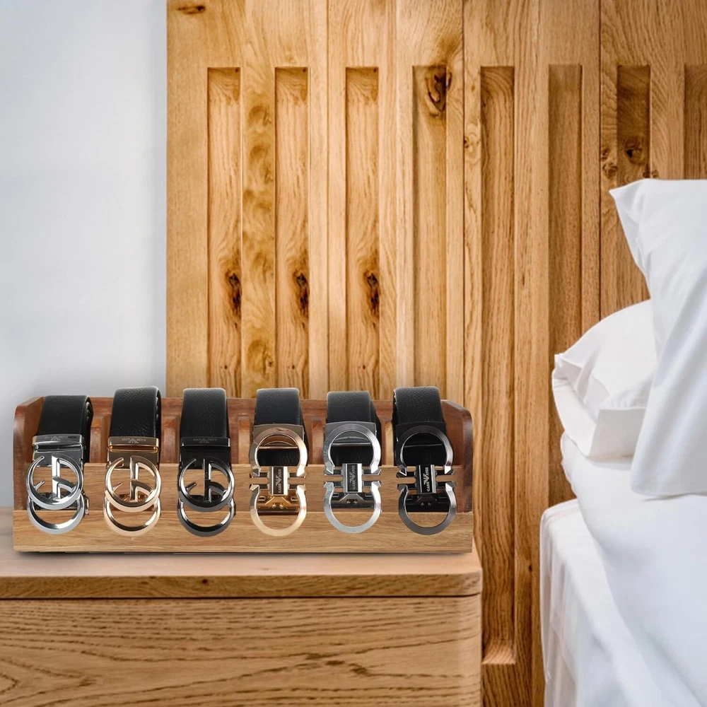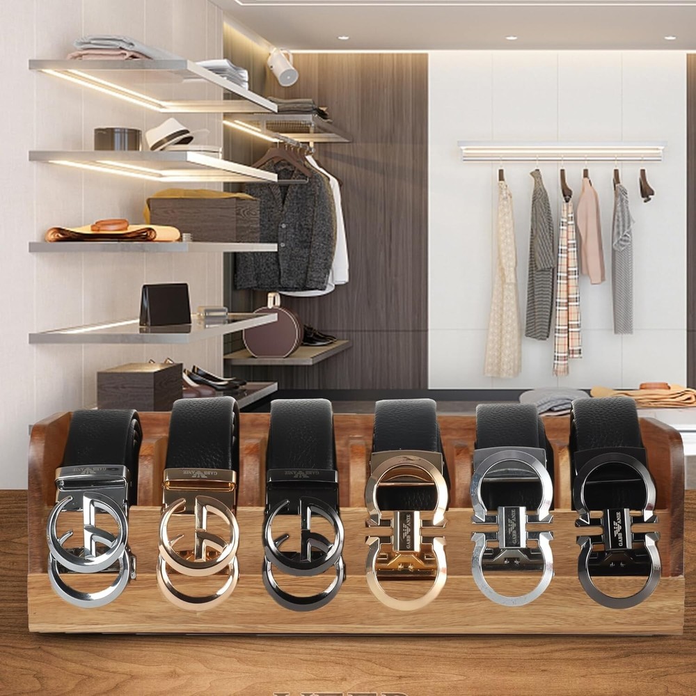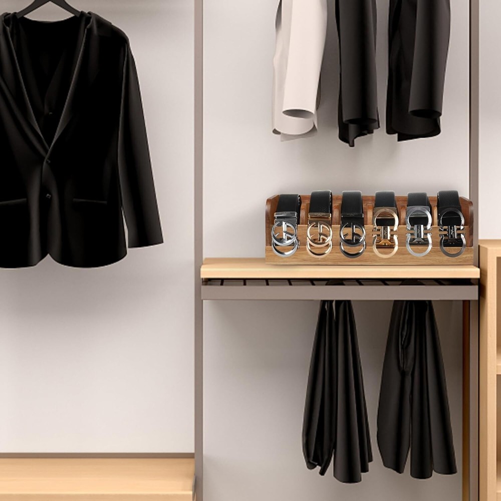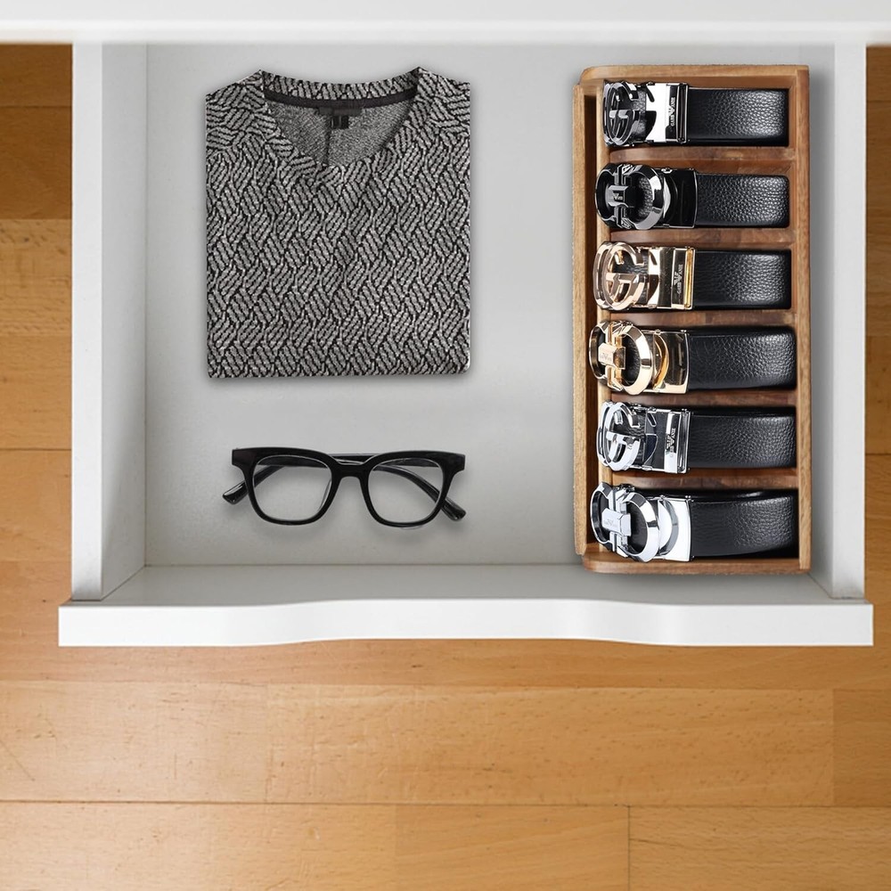 Acacia Wood Belt Organizer Box,6 Grids Belt Rack for Closet and Drawer, Belt Storage Organizer and Displayer for Men Women 【Organizing and Displaying】 :Organize your belts in an orderly manner to keep your belts lined up neatly and control your belts from cluttering and be able to prominently display belt buckles. It is a pretty brilliant concept to display and organize your pricy belts. 【Space Saving】:The belt storage mode of rolling up the belt can save more space. you can put it in the wardrobe, drawer or table, free up storage space and conveniently display your belts 【Sturdy and East to Clean】: belt organizer box is made of 100% bamboo which is sturdy, durable, waterproof and easy to clean, suitable for any scene. Bamboo is also an environmentally friendly material. 【Good Choice for Gift】:This is a novel gift choice, great gift for men women fathers mothers boyfriends girlfriends good friends, can be used as Father's Day,、Mother's Day, Valentine's Day, Christmas, moving, wedding and other holiday gifts. 【 product After-sales Service】:We promise a 100% will satisfaction if there is any problem with our products. is full of confidence in product quality. If there is any problem with the product quality or you think the product is not suitable for you , We are happy to satisfaction every penny you pay Please try to buy a product. Organize with us!
