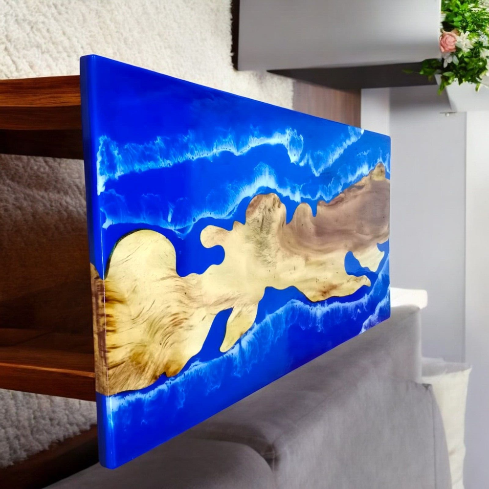 Table Top Size: 36"x24" Inches Our epoxy tables are custom-made, and we strive to use the same type of wood as depicted in our advertising pictures. However, it is not always possible to find an exact match, which may result in slight variations in the epoxy color and wood grain pattern. It's important to keep in mind that the table you receive may not be an exact replica of the advertising picture. We ensure that our clients are informed of every step of the process, from the selection of the wood to the final finish of the table. We keep our clients up-to-date throughout the process to ensure transparency and avoid any misunderstandings. Additionally, our price includes air delivery right to your doorstep via DHL/Fedex/UPS and insurance protection. Please note that you may be responsible for paying any applicable tax and duty on delivery. If you have any concerns or doubts, we highly recommend addressing them before making a purchase. Clearing any doubts beforehand will help avoid any issues and ensure a smooth buying process. It's important to note that any accessories depicted in the advertising images, such as knives, chairs, or lighting, are not included with the product and are only used for photography purposes. Additionally, please keep in mind that the price of the product does not include any type of legs. If you would like legs included, we can provide them for an additional cost. We recommend addressing any questions or concerns before making a purchase to avoid any misunderstandings.