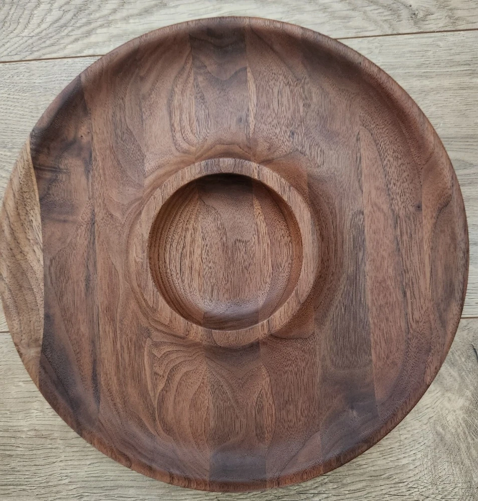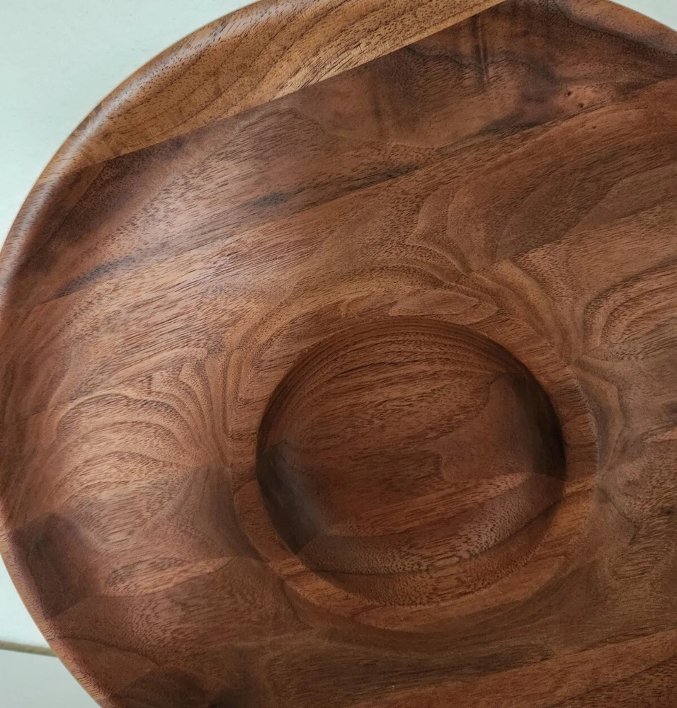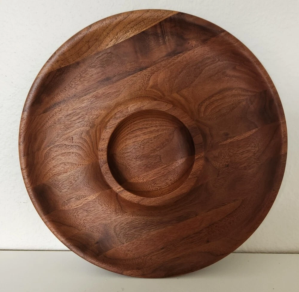 This Acacia Wood Chip Dip Tray is the perfect addition to any kitchen or dining table. With a 12-inch diameter and medium brown wood tone, it is an ideal choice for all occasions. The tray features two compartments, making it easy to fill and keep your chips and dip separate. Crafted from high-quality wood, this chip and dip tray is durable and long-lasting. Its shiny finish and modern style make it an attractive addition to any table setting. Whether you are serving chips and dip for a snack or using it as a decorative piece, this Acacia Wood Chip Dip Tray is sure to impress.