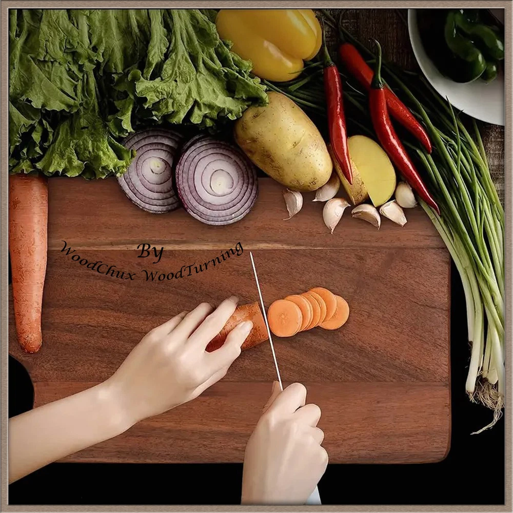Add this Premium Thick Acacia Wood Practical Cutting Board to your countertop as an everyday useful tool in the kitchen! Why do you need this Acacia Wood Cutting Board? Acacia cutting boards provide a chopping surface that is easy to clean and won't damage your knives ! Acacia wood is also resistant to odors and stains! Our Acacia Wood Cutting Board is also pre-treated with Mineral Oil , is reversible , and is harder than most other woods, and provides superior scratch resistance ! This board is for everyday needs, from chopping onions and bell peppers, to peeling carrots and potatoes, to preparing steaks and meats, and lastly, is the perfect board for Meats and Cheeses! Hand wash with soap and water. Easy to refinish by applying mineral oil, walnut oil, or butcher block oil with a paper towel. With regular care, this will last a lifetime. You know what they say! "Buy Quality, not Quantity!" This will last you a long time, and with proper care, such as using our Cutting Board waxes and oils, this board will last for years to come! We do custom laser engraving. If you would like your new cutting board engraved, please message us with the details/logo before purchasing. Small engravings are free, larger, more in-depth engravings will incur a fee. No returns are accepted on any engraved items.