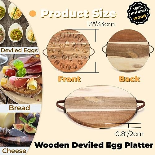This deviled egg platter is a game-changer for parties! The sturdy acacia wood looks elegant, and the 24 holes keep everything neatly in place. The reversible design doubles as a charcuterie board, and the handles make serving a breeze. Perfect for Easter or any gathering—highly recommend!