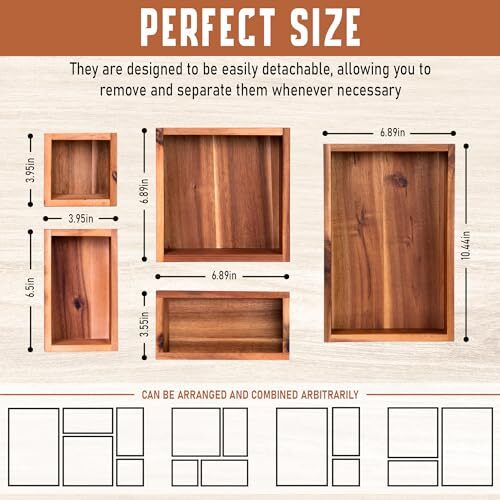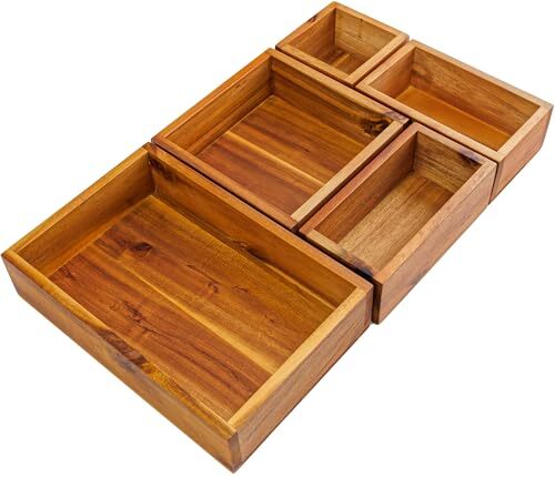 Return Policy Fast Delivery Trusted seller Acacia Drawer Organizer Set of 5, Cabinet Container Box, Wood Bin Set in Varied Sizes, Dividers Holder for Storage Cooking Utensils Spices Tea Bags Foods Office Items (Brown) Product Description Set of 5 Storage Drawer Organizer: By incorporating this wooden storage bin set into your room, you can bid farewell to the tiresome task of searching for misplaced items. With everything neatly arranged, you'll save valuable time and avoid the frustration of rummaging through clutter. The drawer set is suitable for organizing in various areas of your home, including the living room, kitchen, bedroom, bathroom, dresser drawer, office drawer organization. Different Sizes for Utensil Organizer: The cabinet drawer includes 5 small drawer organizers, each available in different sizes. The compact dimensions of 3.95 x 3.95", 3.95 x 6.5", 3.55 x 6.89", 6.89 x 6.89", and 6.89 x 10.44" make them convenient for use as a vanity organizer, catering to your personal needs. Our wooden boxes can be rearranged to your preference, allowing you to organize these storage bins individually or as a set. Feel free to mix and match the inserts to perfectly suit your spaces. Useful Kitchen Divider Boxes: Simplify your kitchen organization with these utensil storage trays. With 5 sturdy and durable acacia containers, allowing you to conveniently view and store your collection of small culinary gadgets, cookware accessories, and cooking tools. Experience a clutter-free space with our practical storage solution, featuring deep compartments that fit perfectly in drawers. Optimal Wood Storage Boxes for Office Tools & Accessories: Streamline your tabletop and cabinet space with these helpful acacia wooden trays, serving as a neatly arranged office organizer. Save your office supplies in your desk drawer to keep pens, markers, staplers, paper clips, scissors, sticky notes, and calculators. The tray edges with a height of 2.17 inches make it useful for storing even taller tools. Additionally, the storage bin with the smallest dimensions can provide an ideal saving box for your jewelry, hair ties, watches, bracelets, and necklaces. Superior Craftsmanship Drawer Ensemble: Our kitchen drawer holder acacia drawer organizer box is crafted by skilled artisans with years of experience. The finished storage boxes feature thick wooden edges and a smooth surface, showcg the excellent workmanship of our dedicated workers in our workshop. Enjoy not only its practical functionality but also its beautiful aesthetic—the variations are endless! Enhanced Space Organization: These durable containers are perfect for everyday use. Designed to accommodate even the tightest drawer areas in your home, this small storage bin holder set offers enhanced space organization. Experience the benefits of our efficient drawer organizers, eliminating countertop clutter and providing a neat storage solution. Note: The color representation of our wood products in photographs may vary slightly from the actual product due to lighting conditions. We provide two colors of the product: acacia brown and black for your reference. Shipping Returns Payment Shipping Shipping is FREE to all addresses other than APO/PO boxes in the lower 48 states. All our stock ships from US-based warehouses. Shipped via USPS or UPS (depending on location and package weight) Unless stated otherwise, all orders will ship within 24-72 hours of your payment being processed. Check our feedback to see the great reviews of FAST shipping we offer. Returns Seller does not accept returns Payment We currently accept payment via eBay managed payments only. Once payment is cleared, we will dispatch your shipment within 1-3 business days. Please refer to the "Shipping" tab for more information regarding shipping speed to your destination.