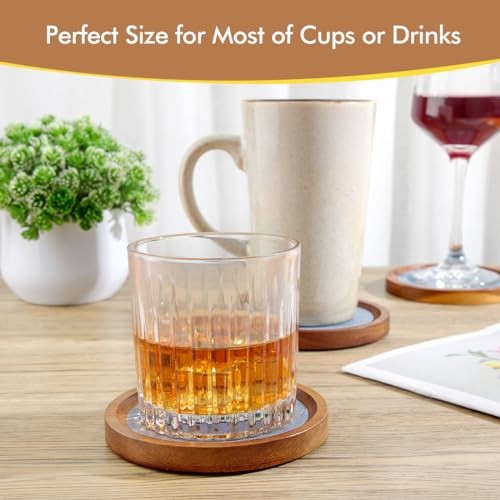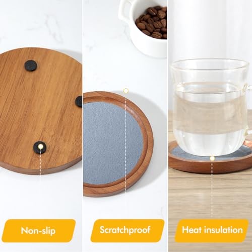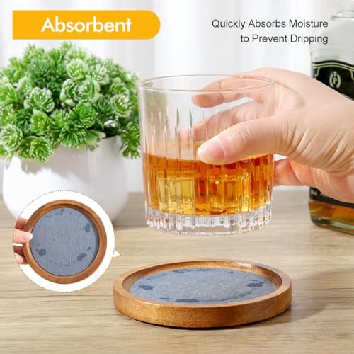 Return Policy Fast Delivery Trusted seller Acacia Wood Coasters for Drinks, 4.13 Inch Felt Wooden Coasters for Coffee Table Absorbent Set of 6 with Holder, Natural Wood Stackable Reusable Coasters for Home Office Coffee Bar Table Product Description Super Absorbent Coasters:These wooden coasters are lined with felt pads for stronger water absorption and heat insulation. The felt pads are glued into the wooden coasters, so t is no chance of the glass falling off with the coaster when you pick it up. Non-slip and Lip Design:Felt coaster with 4 soft anti-slip pads on the bottom to keep from scratching the furniture.The lip design prevents liquids running off, and the bottom prevents water from seeping onto the table even if t is a spillage. Acacia Wood Material:The coasters are made of high-quality acacia wood and are tfore robust and durable, each coaster has a different grain, each coaster looks unique and different. Large Enough to Hold any Drink: The outer diameter is 4.33", inner diameter is 3.93", and thickness is 0.46". Suitable for cups with bottom size of 3.9" and smaller (diameter). Fit most any sized glass, coffee mug, beer mug, wine glasses, water cup… Easy to Clean: Just clean them with a damp cloth and wipe with clean dry cloth now, due to the nature of pure natural wood. Machine washing or hand washing is not recommended. Shipping Returns Payment Shipping Shipping is FREE to all addresses other than APO/PO boxes in the lower 48 states. All our stock ships from US-based warehouses. Shipped via USPS or UPS (depending on location and package weight) Unless stated otherwise, all orders will ship within 24-72 hours of your payment being processed. Check our feedback to see the great reviews of FAST shipping we offer. Returns Seller does not accept returns Payment We currently accept payment via eBay managed payments only. Once payment is cleared, we will dispatch your shipment within 1-3 business days. Please refer to the "Shipping" tab for more information regarding shipping speed to your destination.