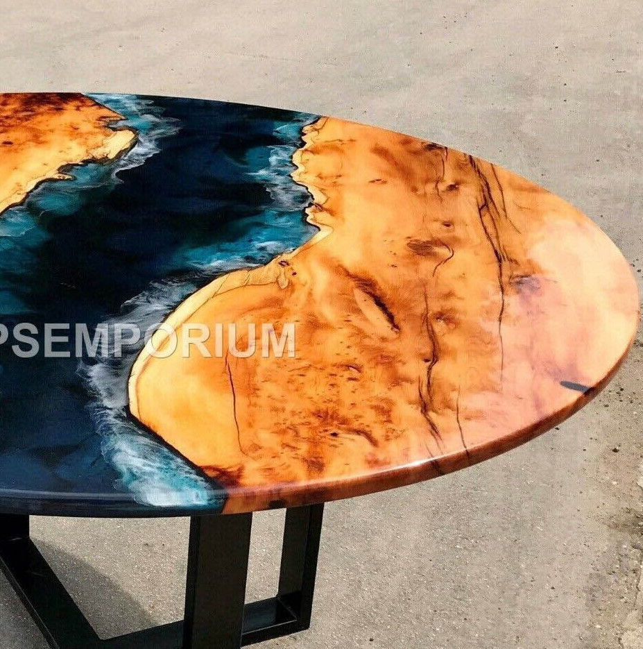 Our epoxy tables are custom-made, and we strive to use the same type of wood as depicted in our advertising pictures. However, it is not always possible to find an exact match, which may result in slight variations in the epoxy color and wood grain pattern. It's important to keep in mind that the table you receive may not be an exact replica of the advertising picture. We ensure that our clients are informed of every step of the process, from the selection of the wood to the final finish of the table. We keep our clients up-to-date throughout the process to ensure transparency and avoid any misunderstandings. Additionally, our price includes air delivery right to your doorstep via DHL/Fedex/UPS and insurance protection. Please note that you may be responsible for paying any applicable tax and duty on delivery. If you have any concerns or doubts, we highly recommend addressing them before making a purchase. Clearing any doubts beforehand will help avoid any issues and ensure a smooth buying process. It's important to note that any accessories depicted in the advertising images, such as knives, chairs, or lighting, are not included with the product and are only used for photography purposes. Additionally, please keep in mind that the price of the product does not include any type of legs. If you would like legs included, we can provide them for an additional cost. We recommend addressing any questions or concerns before making a purchase to avoid any misunderstandings.