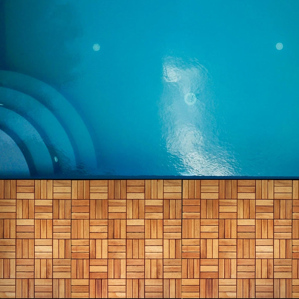 INDOOR AND OUTDOOR DECK FLOORING: Deck tiles create a beautiful space both inside and outside, The interlocking wood tiles can be installed on top of concrete, wood, carpet, pavers, or any other solid surface. Great for decks, patios, balconies, around pools, saunas, showers, sun rooms, mud rooms, bedrooms, and more. ★ INDOOR AND OUTDOOR DECK FLOORING: Deck tiles create a beautiful space both inside and outside, The interlocking wood tiles can be installed on top of concrete, wood, carpet, pavers, or any other solid surface. Great for decks, patios, balconies, around pools, saunas, showers, sun rooms, mud rooms, bedrooms, and more. ★ MADE FROM NATURAL ACACIA WOOD: Acacia is known for its excellent resistance to rot and decay from outdoor elements. The slats are all solid hardwood, weatherproof, beautifully designed with the slats draining water quickly to keep your floors dry. Each tile will have 4 edges, 2 edges with hooks and 2 edges with holes. They easily click together like a puzzle, rigid and won’t slide about no matter the surface you put them on. ★ EASY INSTALLATION / WEATHER PROOF AND DURABLE: Deck Tiles feature snap-lock connectors for easy do-it-yourself installation without the use of tools or hardware. We recommend giving them a good clean and using some wood oil before summer and winter to help keep their great finish and durability. They should not be used during the snowy season. You can collect them easily, clean and using some wood oil and continue using them when the snow melts. ★ WEATHER PROOF AND DURABLE: Made from natural Acacia wood and already pre oiled your interlocking tiles can withstand wind rain or shine and will look as if new! We recommend giving them a good clean and using some wood oil before summer and winter to help keep their great finish and durability. They should not be used during the snowy season. You can collect them easily, clean and using some wood oil and continue using them when the snow melts. ★ FSC Certified Acacia Wood – We love the planet and so do you. Different from others, our acacia wooden interlocking deck tiles is not only made of organic eco-friendly material, but also is traceable to a sustainably managed forest. Buying FSC-certified outdoor furniture helps support sustainable forest management which reduces the emission of greenhouse gases and protects wildlife. Help save the world by buying from .