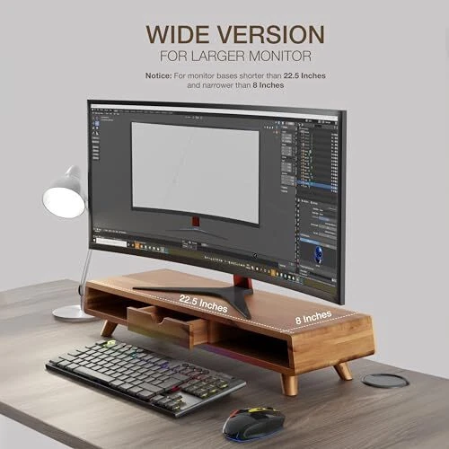 Acacia Wood Monitor Stand with Drawer for Desk Organization