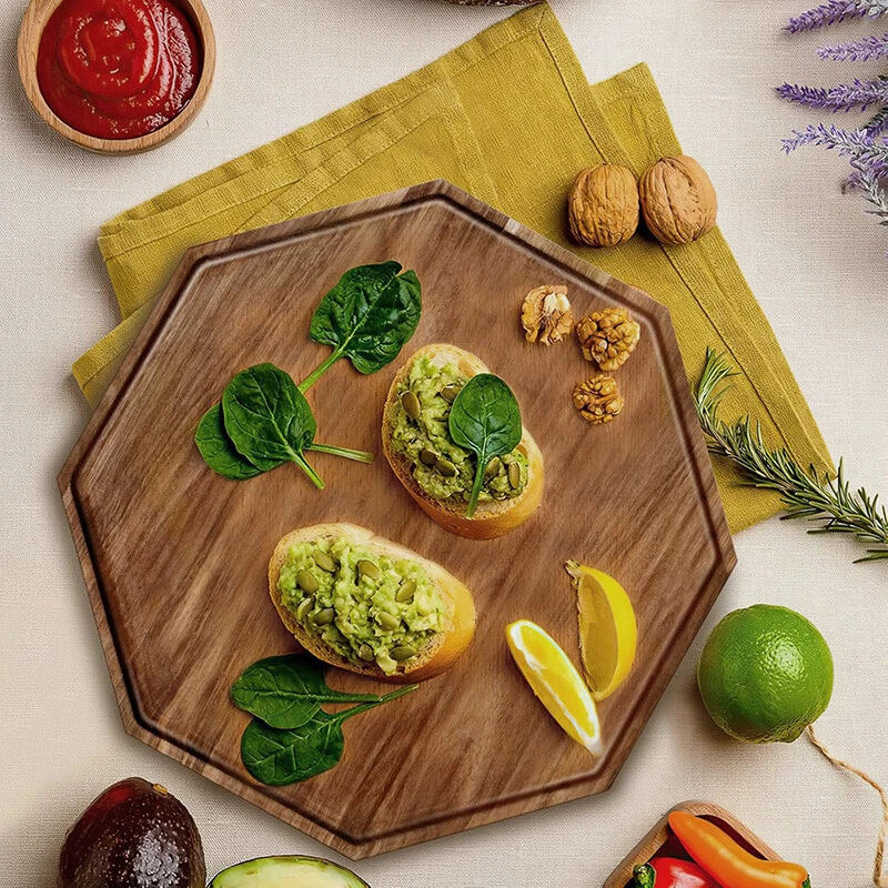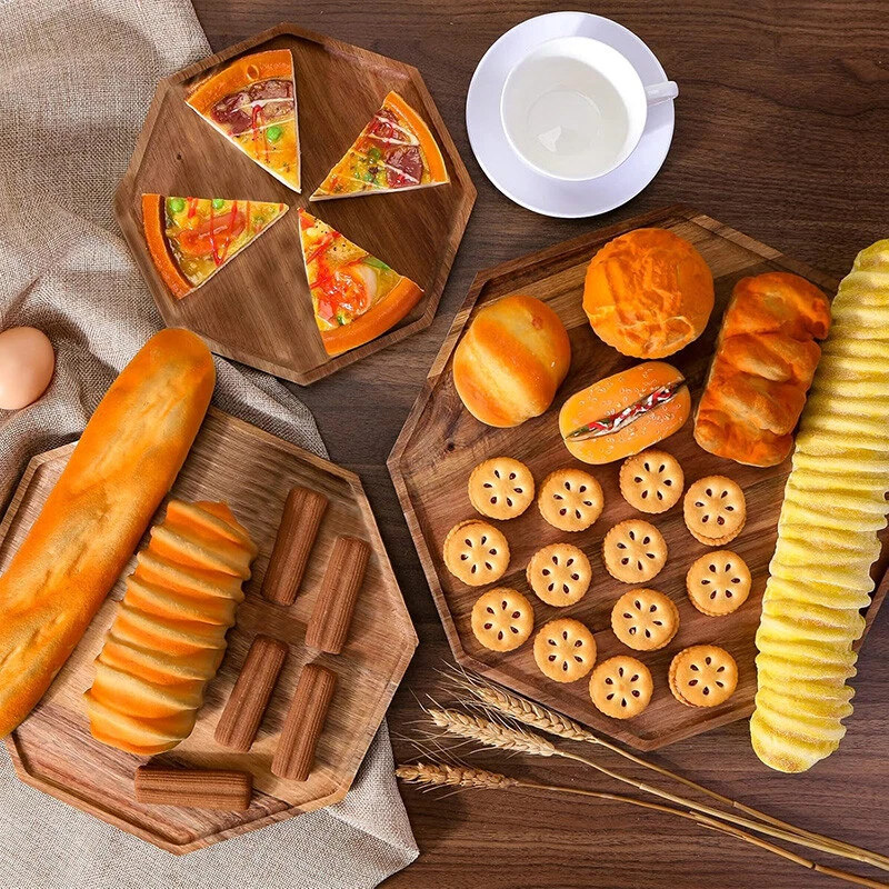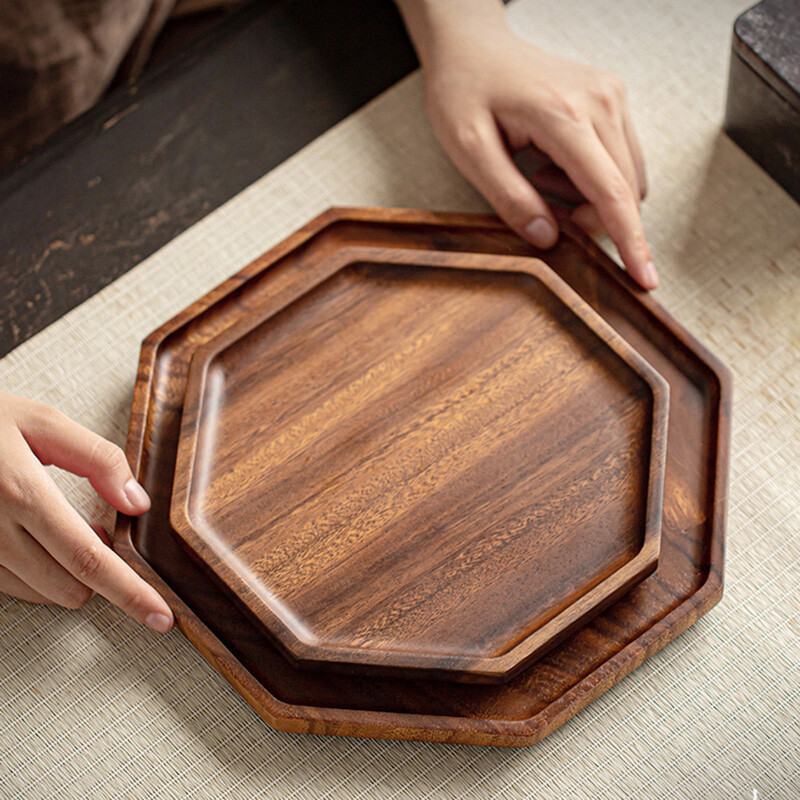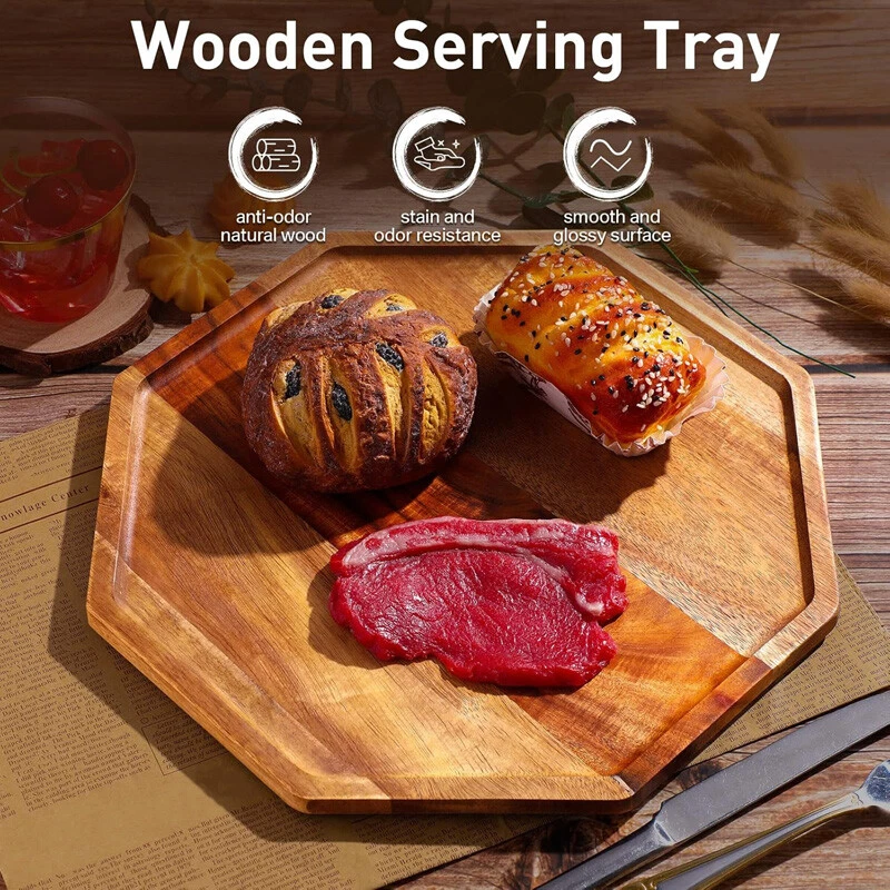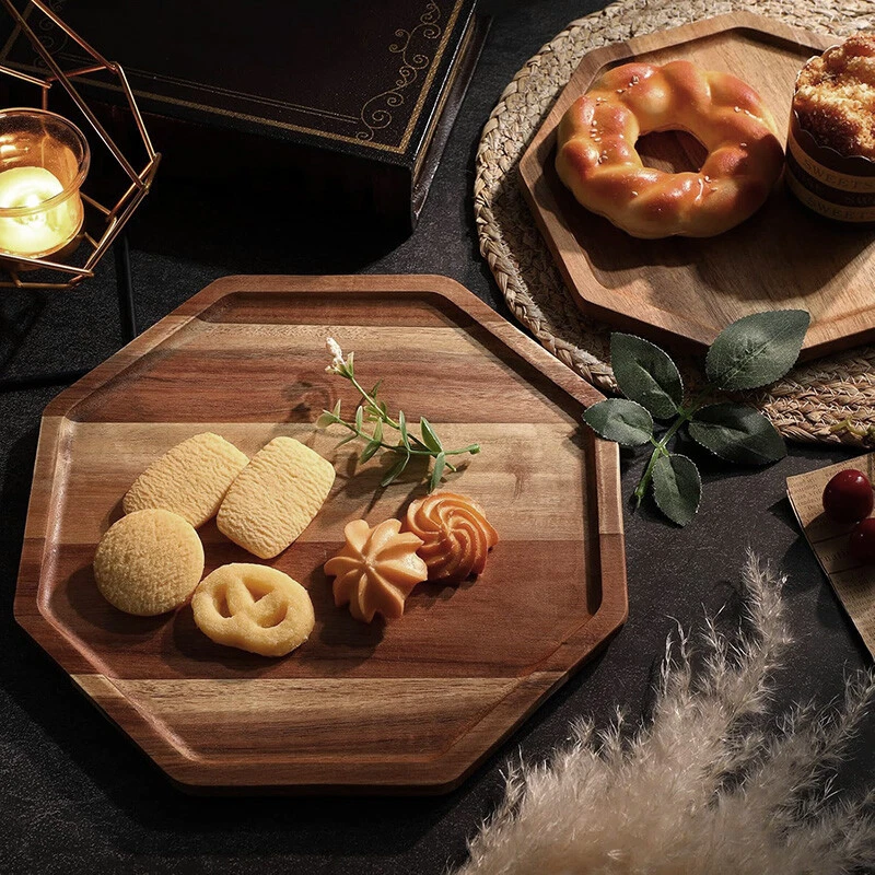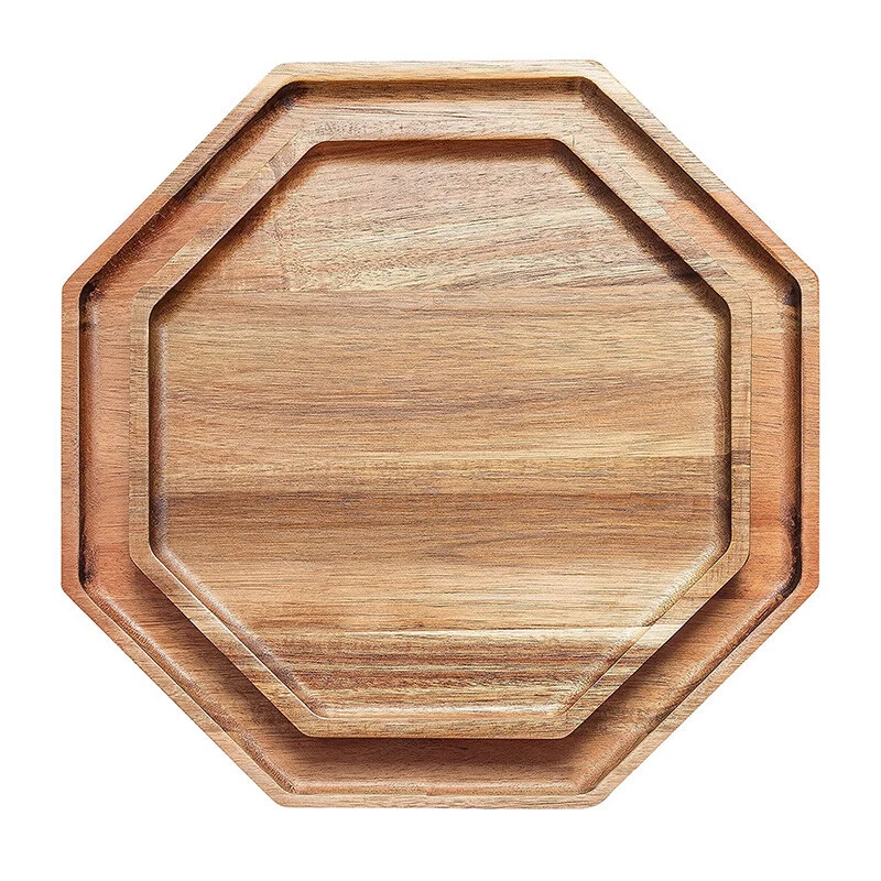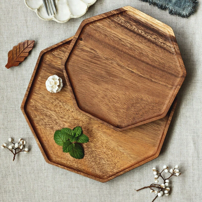 Specifications: Product Name: Wooden Dinner Plate Material: Acacia Style: Octagonal Color: Wood Color (Because It Is Natural Wood, The Colour Will Be Dark or Light) Size: 20cm/7.87inch, 25cm/9.84inch Thickness: 2cm/0.78inch Features: HEALTH & FOOD SAFE: This is pure Acacia wood, very sturdy and food safe. HIGH QUALITY: Hand carved from a Single Piece of Acacia wood by our craftsmen. Only use best wood to make our serving plates strong and long lasting. MULTI USE: It could be used as charcuterie boards, fruit platter, dessert plates, food dish, salad plate, serving tray or cookie platter, perfect for Christmas, Thanksgiving, weddings, parties, birthday or any other events. GREAT GIFT IDEA: Cute design, color and style. Ideal for various occasions including family gatherings, outdoor parties, wedding anniversary gifts,bridal shower gifts. Package include: 1 Pcs Wooden Tray Notes: Due to display differences and lighting effects, the actual color of the product may be slightly different from the color shown on the picture. Thanks! Due to manual measurement, please allow a measurement tolerance of 1-2cm.