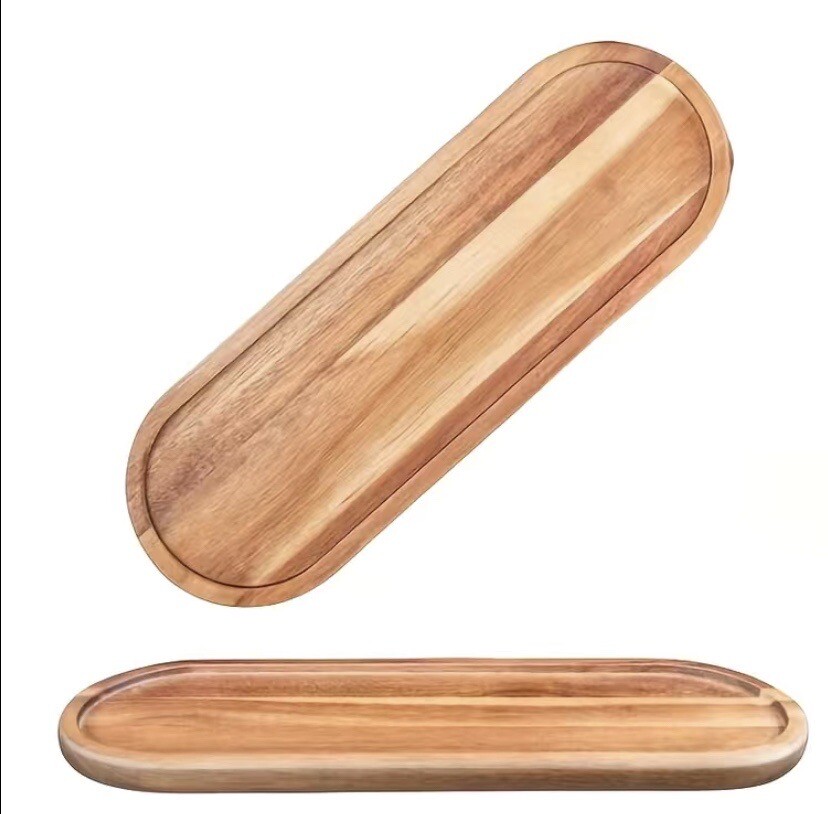 Acacia Wood Oval Wooden Platters for Food Holder/Bbq/Party Buffet Gift for Friend, Family. Description Style - Classic Special Feature - Handcrafted Color Brown Pattern - Solid Material - Wood Is Dishwasher Safe - No Number of Pieces - 1 Item Weight - 1.47 pounds Shape - Oval Size - medium Occasion - Bbq Seasons - All Seasons Finish Type - Acacia Wood Product Dimensions - 7.5 x 4.25 x .50 Every wood platter is hand-finished by artisans, sourced from the highest quality 100% natural acacia wood Our Oval Platter have raised edges to help prevent food from slipping or spilling, and are also easier to lift and carry, serving your favorite food in style. Ideal for serving with side meals, appetizers dish, decorative and fruit plates… Suitable for all occasions: Parties and Events, Indoor and Outdoor Dining. Perfect for serving meals, small snacks, fruit, desserts, bread, cakes, olives, sushi, cookies, or as a table decoration, you can also use it like serving tea, coffee, juice, or a dresser tray. Adds such an elegant feel to your home. We Recommend, do not wash. To clean, wipe with damp fabric and towel dry, To preserve the beauty of the Acacia Wood, periodically apply oil with a fabric or towel and let dry long. This Oval serving Platter is Perfect for serving meals, small snacks, fruit, desserts, bread, cakes, olives, sushi, cookies, or as a table decoration, you can also use it like serving tea, coffee, juice, or a dresser tray. Adds such an elegant feel to your home. these wooden Platter feature unique and natural colors and textures that are perfect for any decor.