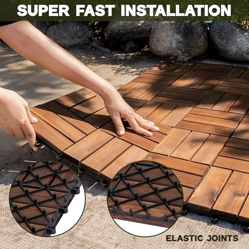 Return Policy Fast Delivery Trusted seller Acacia Wood Patio Deck Tiles-9 Pcs 12 Slats Interlocking Decking Tiles for Patio Decor, Waterproof Indoor & Outdoor Use, Balcony Garden Decking Tile (11.81x11.81x0.94 inches) Brown Product Description PREMIUM ACACIA WOOD: Made from high-quality acacia wood, these patio deck tiles are durable, weather-resistant and built to last. They withstand daily use while maintaining their beauty, providing a stylish and reliable solution for outdoor flooring. VERSATILE USAGE: These acacia wood patio deck tiles are perfect for both indoor and outdoor spaces, including patios,balconies and gardens. Their adaptable design effortlessly enhances any environment, adding both style and functionality to any area. ANTI-SLIP DESIGN: Engineered for maximum traction and stability, these patio deck tiles reduce slips and falls. Ideal for swimming pools, balconies, and high-traffic outdoor areas, they provide a secure and reliable surface in various conditions. EFFORTLESS ASSEMBLY: These patio deck tiles feature a simple interlocking system, allowing quick and secure installation without tools or expertise. The hook fitting design s together like puzzle pieces, making assembly easy and fun for anyone. SMART DRAINAGE SYSTEM: Our patio deck tiles feature a specially designed base with drainage channels to efficiently direct water away, preventing pooling and moisture damage. These durable tiles support up to 440 pounds, ensuring a sturdy and reliable solution for your outdoor space. Shipping Returns Payment Shipping Shipping is FREE to all addresses other than APO/PO boxes in the lower 48 states. All our stock ships from US-based warehouses. Shipped via USPS or UPS (depending on location and package weight) Unless stated otherwise, all orders will ship within 24-72 hours of your payment being processed. Check our feedback to see the great reviews of FAST shipping we offer. Returns Seller does not accept returns Payment We currently accept payment via eBay managed payments only. Once payment is cleared, we will dispatch your shipment within 1-3 business days. Please refer to the "Shipping" tab for more information regarding shipping speed to your destination.