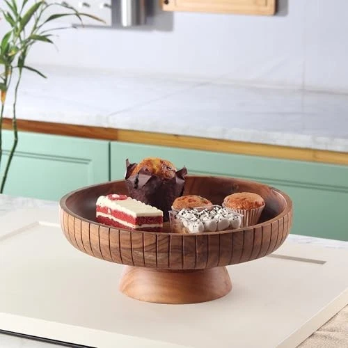 Menu 1. We require immediate payment. 2. We currently accept payment via eBay managed payments only. 3. Once payment is cleared, we will dispatch your shipment within 1-3 business days. Please refer to the "Shipping" tab for more information regarding shipping speed to your destination. Acacia Wood fruit bowl with pedestal | 12" dia | Decorative bowl used as Centerpiece for kitchen counter or dining table | Wooden table decor| (Natural Finish) Product description LARGE CAPACITY BOWL: This wooden salad bowl is 12 inches wide and 3.5 inches deep. This wooden bowl can hold sufficient quntity of fruits required fopr a family of four/five. The height of the bowl allows easy acces to the items placed in the bowl. HANDMADE : Our Wooden bowls are handmade by skilled artisans that is why no two bowls are the same. The engraving on each bowl is unique and looks attractive making them the perfect wooden bowls for décor. CENTERPIECE FOR DECOR: If you were on the look out for an attractive looking centerpiece for your dining table or kitchen counter decor, or a key bowl for entrance, your search ends . The unique pattern make this an attraction and adds a contempporary touch to your space. VERSATILE : Use this bowl with pedestal for oraganizing fruits in one place or holding candies or may be even your keys and accessories. The bowl can also double up as a décor item for your kitchen or dining table. CONTRASTING LOOK PEDESTAL STAND: Our pedestal bowls come with contrasting pedestal stands for any color option you choose ou of the four color options. This fruit bowl for kitchen counter will always look unique in any decor setting. FOOD-SAFE: Have your meal without worrying about leaching plastics in case of plastic mixing bowls, harmful dyes or breakage in case of ceramic mixing bowls. Our mixing bowls don't interfere with the natural taste of food so that you enjoy your soup or your smoothie. GIFTING OPTION: Gift this wood bowl on occasions such as Thanksgiving, Christmas, Birthdays, Housewarming, Valentine’s, Wedding gift or any other occasion. Disclaimer: ’s products are manufactured in India and the brand has no association or tie ups with other brands of other countries. The products are handcrafted, no two products are similar. PLEASE MESSAGE US IF YOU HAVE ANY OTHER QUESTIONS, AND MANY THANKS FOR READING ALL OF THIS. Copyright ©#. All Rights Reserved.
