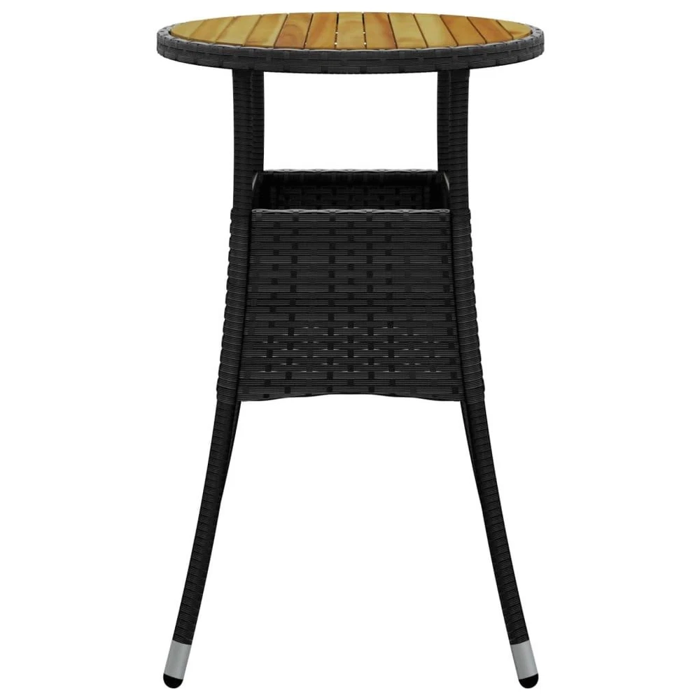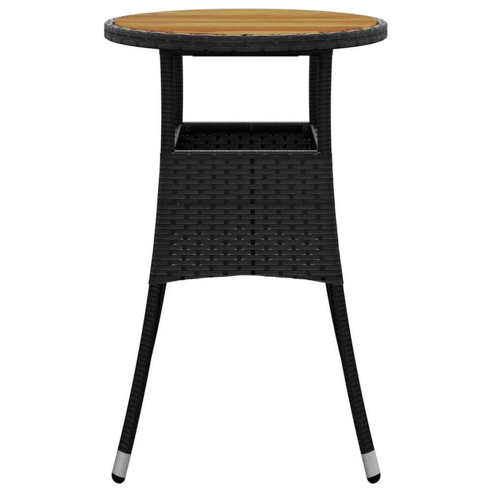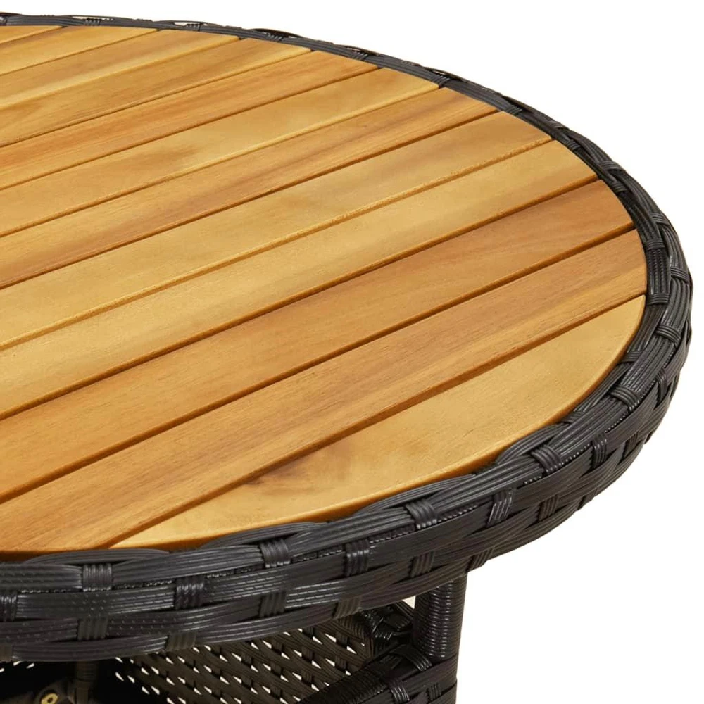 Combining both style and function, this garden table is the centerpiece of your garden, patio or any other living space. Featuring a powder-coated steel frame wrapped with poly rattan, the outdoor table is durable. Its tabletop is made of solid acacia wood, a hardwood with dense grains. This beautifully-designed patio table is stable, durable and eye-catching. Additionally, the exquisite craftsmanship and beautiful wood grains make every piece slightly different from the next. Note: In order to extend the life of your outdoor furniture, we recommend you to it with a waterproof cover. Color: Black Material: Poly rattan, powder-coated steel, solid acacia wood Dimensions: 23.6 x 29.5 (Diameter x H) With protective rubber for wood Assembly required: Yes WARNING: California's Proposition 65
