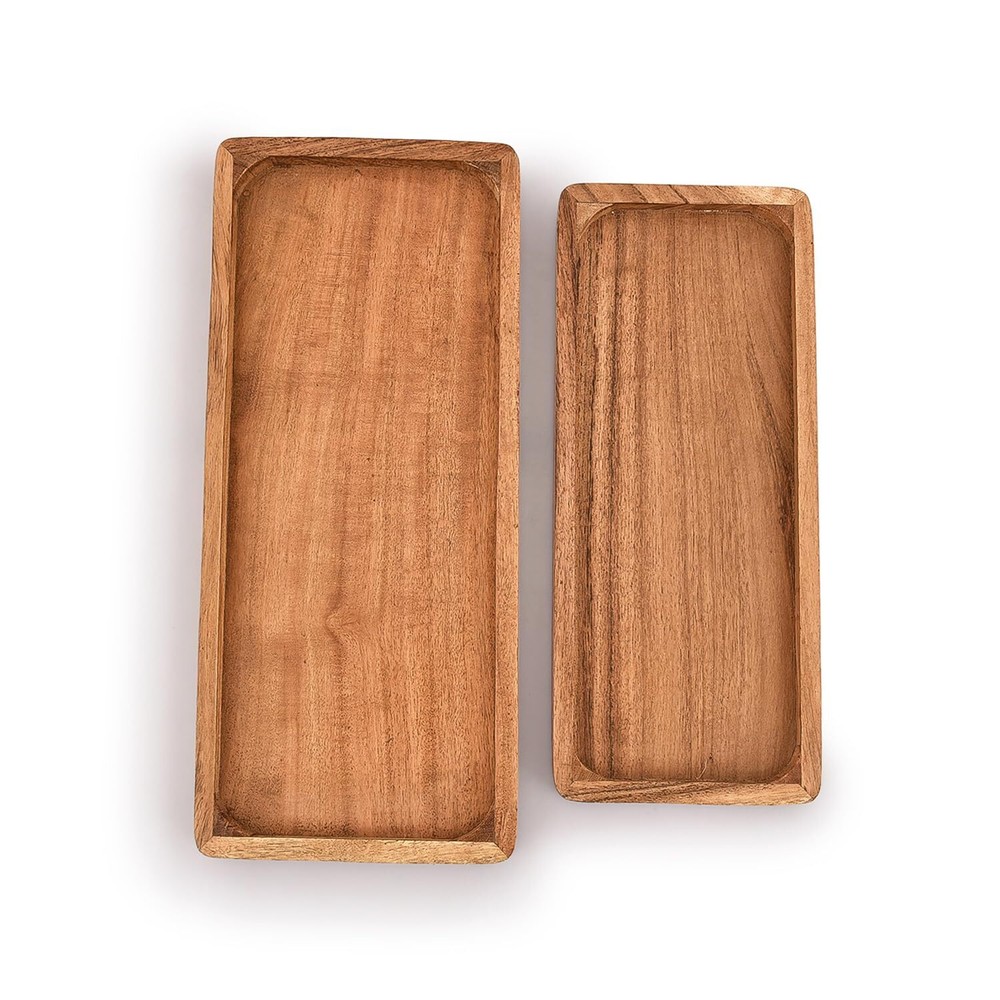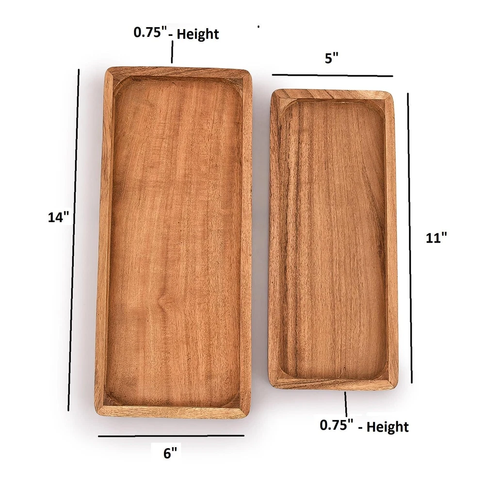 Harmonic eBay Listing Acacia Wood Rectangular Wooden Platters for Food Holder/BBQ/Party Buffet Gift for Friend, Family. Welcome! Discover a range of items suited to enrich your everyday life. Overview This rectangular serving Platter Perfect for serving meals, small snacks, fruit, desserts, bread, cakes, olives, sushi, cookies, or as a table decoration, you can also use it like serving tea, coffee, juice, or a dresser tray. Adds such an elegant feel to your home. these wooden Platter feature unique and natural colors and textures that are perfect for any decor. Highlights Every wood platter is hand-finished by artisans, sourced from the highest quality 100% natural acacia wood Our Rectangular Platter have raised edges to help prevent food from slipping or spilling, and are also easier to lift and carry, serving your favorite food in style. Ideal for serving with side meals, appetizers dish, decorative and fruit plates… Suitable for all occasions: Parties and Events, Indoor and Outdoor Dining. Perfect for serving meals, small snacks, fruit, desserts, bread, cakes, olives, sushi, cookies, or as a table decoration, you can also use it like serving tea, coffee, juice, or a dresser tray. Adds such an elegant feel to your home. We Recommend do not wash. To clean, wipe with damp fabric and towel dry, To preserve the beauty of the Acacia Wood, periodically apply oil with a fabric or towel and let dry long. Packet Contain Two Platters First Platter Size is 14" x 6" x 0.75" & Secound Platter Size is 11" x 5" x 0.75"". Shipping & Dispatch Your order will be mailed to the shipping address linked with your eBay account. Confirm all details before finalizing your purchase. We typically dispatch items within 1-2 business days. Anticipate delivery in approximately 3-7 business days, dependent on your location. P.O. Boxes or local pickups aren’t offered unless specifically noted. Returns & Reassurance We stand by the quality of our merchandise. If you’re unsatisfied, you may initiate a return through eBay’s returns process within 30 days of receiving your shipment. Products must be kept in original packaging and condition to qualify for a refund. If the item arrives damaged or is significantly not as described, please message us through eBay so we can resolve the issue quickly. Payment & Security We accept major credit cards and PayPal through eBay’s secure checkout. Double-check your billing information to ensure a smooth transaction. Questions? Feel free to reach out via eBay’s messaging platform. We aim to address inquiries within 24-48 hours, ensuring a helpful and pleasant buying experience.