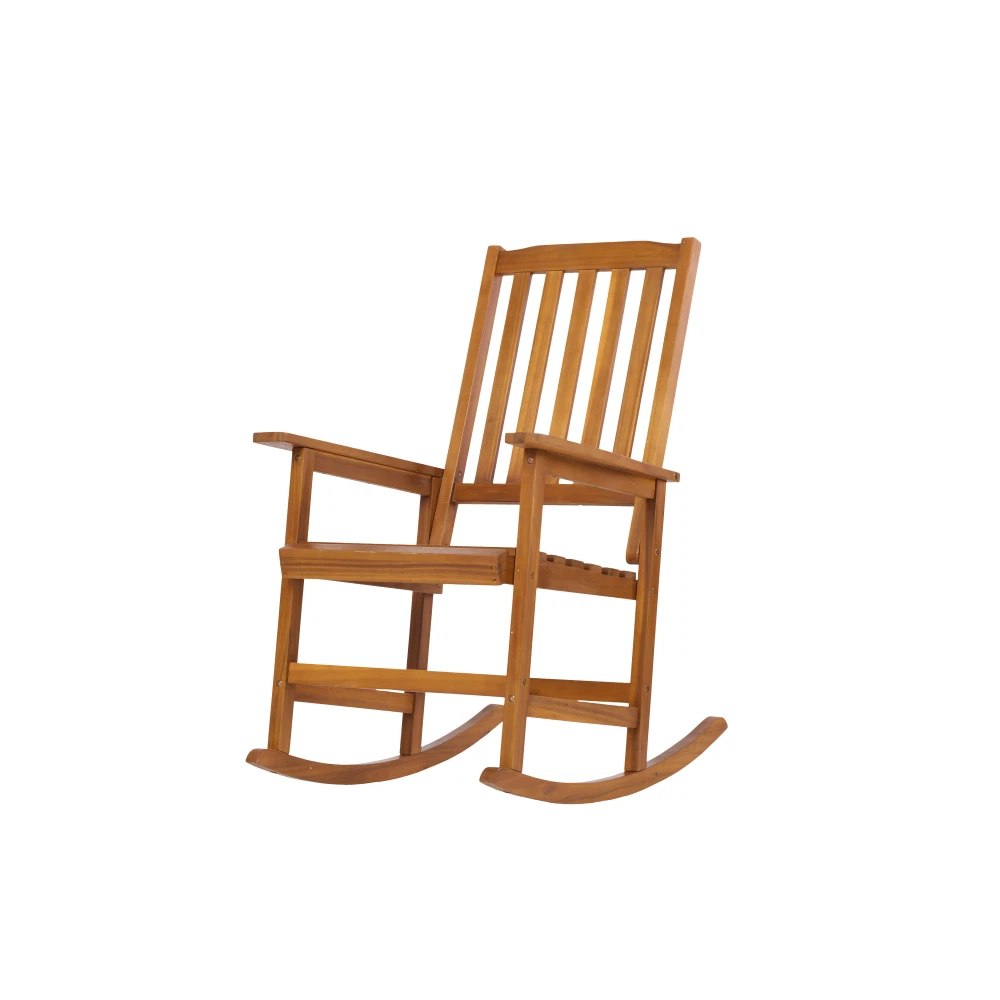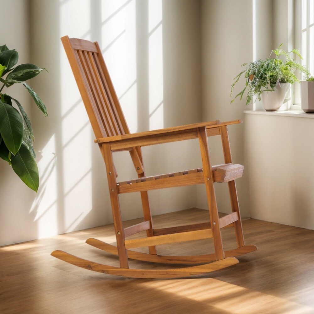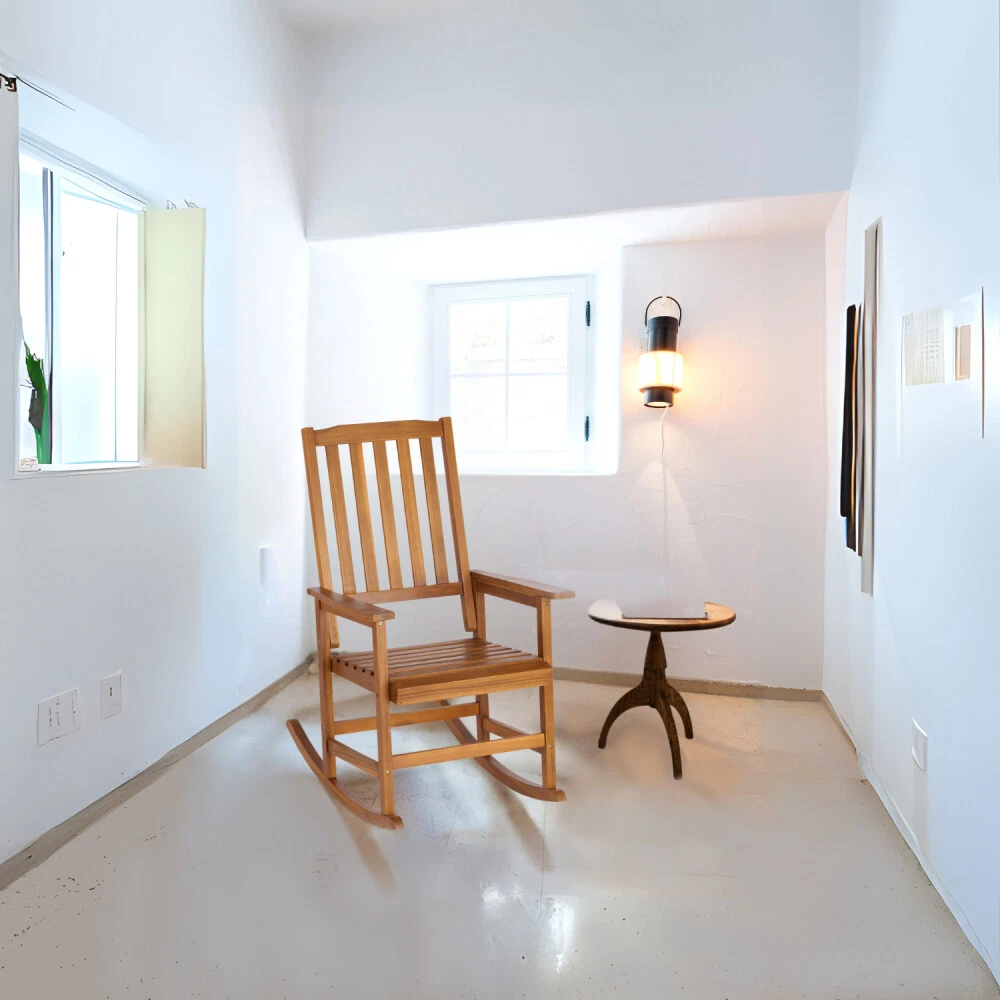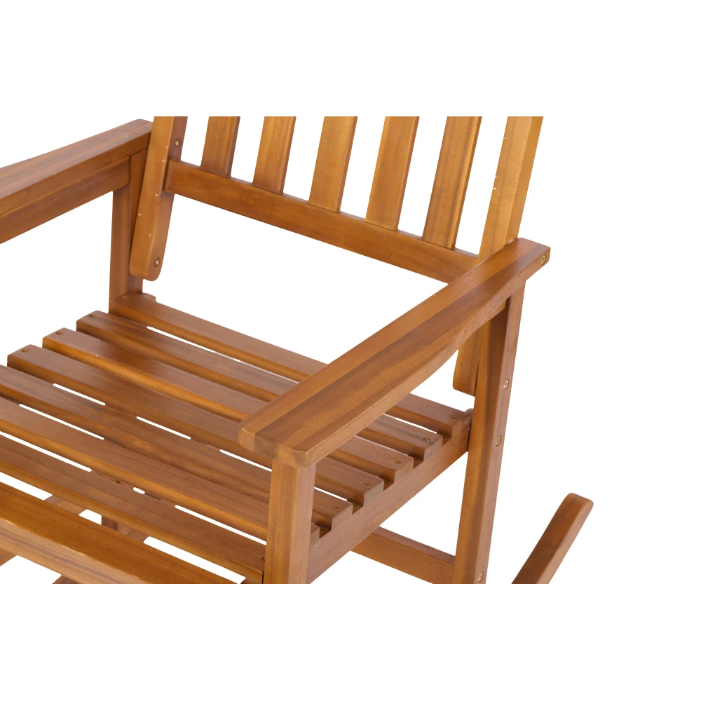 Elegant Design: The Rocking Chair Light Brown features a sophisticated and stylish design that adds a touch of elegance to any room. Durable Material: Crafted from high-quality acacia wood, this chair offers exceptional durability and long-lasting performance. Comfort and Relaxation: The ergonomic design ensures maximum comfort, making it perfect for leisurely moments and relaxation. Natural Finish: The chair's natural finish highlights the rich, beautiful grain of the acacia wood, enhancing its aesthetic appeal.