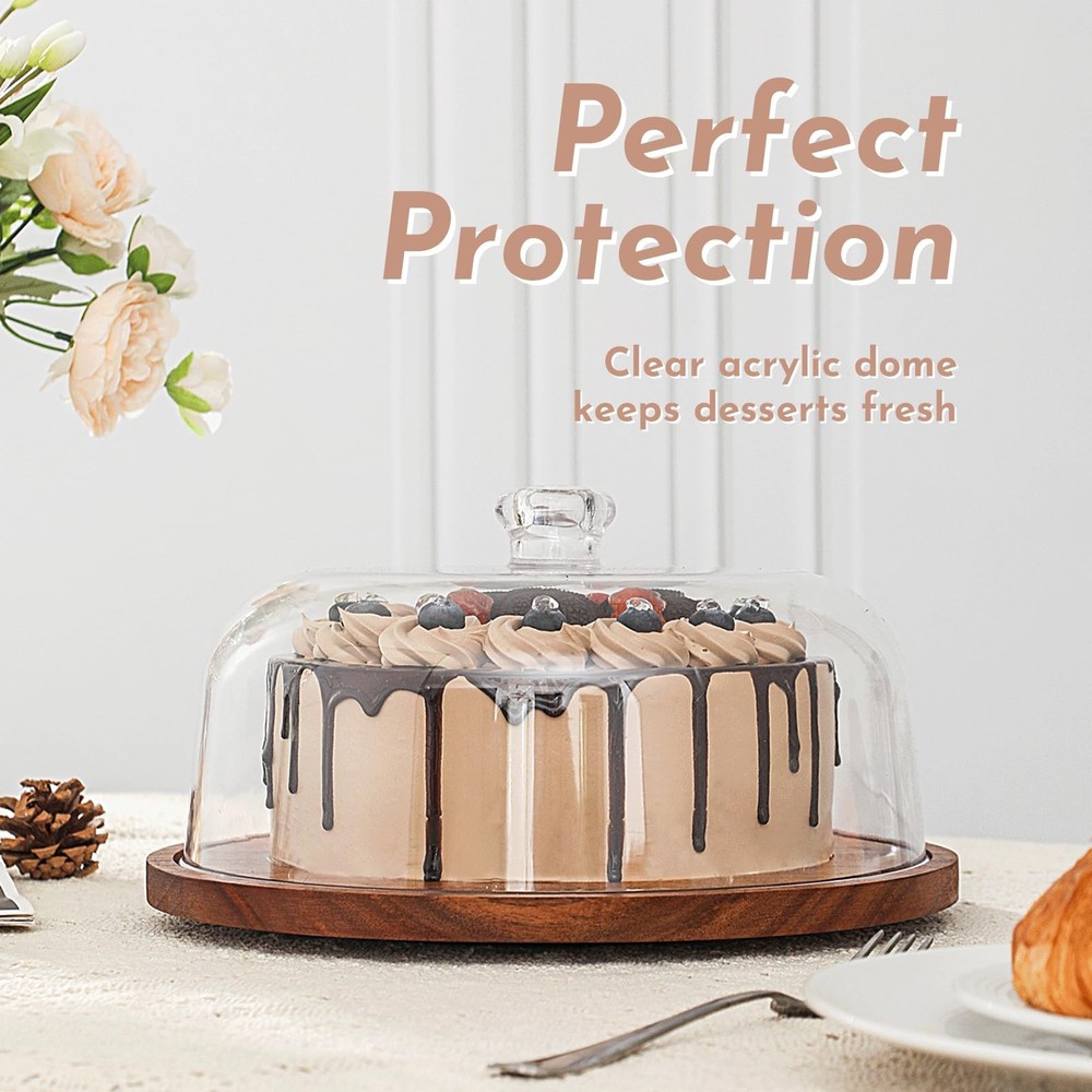 Acacia Wood Cake Stand with Acrylic Dome Lid, Cake Holder 360° Rotating, Dessert Display Stand with Dome Cover, Charcuterie Boards for Cheese, Chips, Fruit, Cake Board, Cake Plate for Party, Wedding Product Details Color: wooden-ratating Brand: Ftytdefebrero MPN: CS UPC: 761709318543 EAN: 0761709318543 Color: wooden-ratating Material: Acacia Wood Brand: Ftytdefebrero Item Weight: 2.2 Pounds Item dimensions L x W x H: 13.4 x 13.4 x 7.2 inches Finish Type: Polished Shape: Round Base Type: Pedestal Assembly Required: No Load Capacity: 7 Pounds Special Feature: Wheels Manufacturer: Ftytdefebrero UPC: 761709318543 Product Dimensions: 13.4 x 13.4 x 7.2 inches Item Weight: 2.2 pounds Country of Origin: China Finish types: Polished Batteries required: No 360 Rotating Base: The smooth-rotating turntable on this cake holder allows for easy access to every angle of your desserts or display items. Perfect for decorating, serving, or admiring your culinary creations on this elegant charcuterie board with lid without lifting or moving the stand. Versatile Serving Tray: Beyond cakes, this stand elegantly displays cupcakes, cookies, fruits, or charcuterie. This versatile cake plate with lid features a spacious design that accommodates various food sizes, making it one of the most practical cake stands for party buffets, tea gatherings, or holiday celebrations. Universal Event Fit: Designed to complement any occasionfrom rustic weddings to modern birthdays or formal anniversariesthis elegant cake display with cover elevates your dessert presentation. This timeless cake display stand with dome lid blends seamlessly with any decor theme or tablescape.