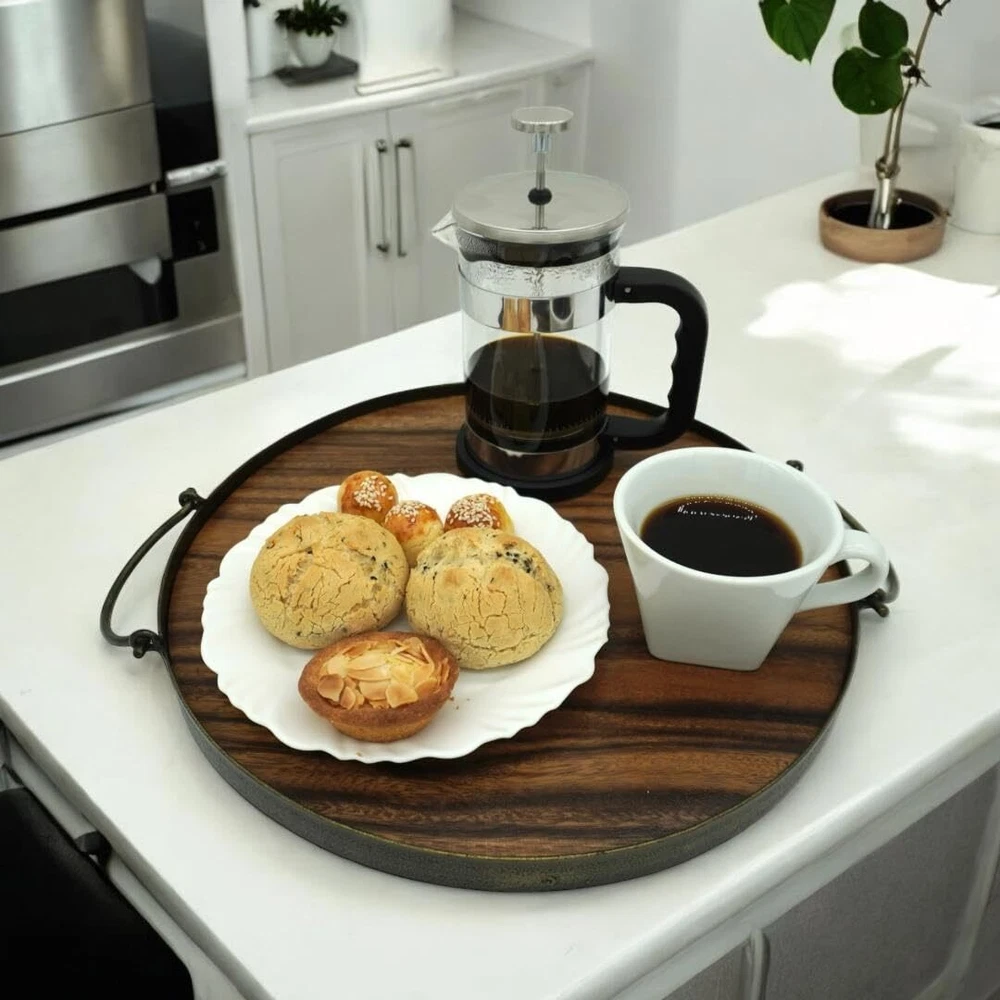 Acacia Wood Cheese Tray and Serving Board with Handles – Large Round Charcuterie Circle Board, Hardwood Platter for Entertaining and Serving, 14" Diameter Durability: Crafted from a single piece of Acacia wood with joint-free, glue-free construction and continuous grain, this 14-inch diameter wooden tray is both durable and versatile. The seamless design and sturdy iron handles ensure long-lasting use. Easy-Grip Handles: Featuring easy-grip iron handles, this round cheese board makes serving drinks, appetizers, or breakfast a breeze. Its rustic farmhouse style adds charm to your coffee table or ottoman. Handcrafted Quality: Each large round charcuterie board is handcrafted from natural Acacia wood, ensuring that no two boards are exactly alike, showcasing the unique beauty of the wood.. Versatility: Ideal as a round cheese tray, a hardwood serving board, or a charcuterie board. This versatile piece is perfect for various occasions and uses. Unique Character: Handmade from 100% natural Acacia wood, each rustic round tray features unique grain patterns and colors, highlighting the individuality of your wooden serving board. Care Instructions: Hand wash and dry immediately. Do not soak in water, use in the dishwasher, or heat in an oven or microwave. Periodically apply food-grade wax or oil for added luster and longevity. Dimensions: Approximately 14 inches in diameter and 1 inch in height. Due to its handmade nature, dimensions and shape may vary slightly. ROUND ACACIA WOOD SERVING TRAY WITH HANDLES Each Natural Wooden Round Circle Tray is carefully hand-made from 1 solid piece of richly grained natural Acacia hardwood. The antique steel frame edging is both functional and beautiful. The raised edging helps to prevent beverage glasses from slipping off the tray while serving. The easy-grip server handles fold up when not in use. Functional, use as a food, drink, appetizer, and charcuterie server. Whether serving breakfast, lunch, dinner or offering the children sandwiches and snacks, serving hors d'oeuvres, wines, fruit, cheeses, sandwiches, displaying appetizer pairings for your guest's wine tasting, or serving a flight of your favorite drink, this round wooden tray makes a beautiful showcase of any food and beverage. Practical around the kitchen, dining, living, and entertainment rooms, a perfect addition to your home décor. The trays can also be used in the kitchen to store spices, herbs, glasses, or mugs. The dimensions are 14” x 14” x 1”. Because they are handmade there may be some slight size variations. Acacia Wood is 100% Natural; no two round trays look are exactly alike. The grain and color may vary. Handwashing is recommended, hand-dry immediately. Do not place in the dishwasher or microwave and do not soak in water. We recommend occasionally oiling using a commercially available food-grade cutting board oil. SHIPPING Domestic Buyers - We have confidence in our products, but if you are not fully satisfied please contact us within 30 days of purchase and you will get full refund. - We ship within 3 business days of payment, usually sooner - We offer FREE shipping on all orders! - We only ship to the lower 48 states, no APO/FPO addresses or PO Boxes allowed International buyers – please note: Import duties, taxes, and charges aren't included in the item price or postage cost. These charges are the buyer's responsibility. - Please check with your country's customs office to determine what these additional costs will be prior to bidding or buying. * Order Cancellation Policy ** You can return a product for up to 30 days from the date you purchased it. 1. The seller reserves the right to cancel the special case only due to eBay cancellation fee. 2. The decision of seller is the final. 3. The seller will respond to the cancellation request within 2 business days. Please wait for the result of cancellation. 4. In case the cancellation is not completed by some reasons, the buyer can follow the options below to get the refund. 4.1 The buyer can reject the item when it arrives. 4.2 The buyer can send the item back to the seller within 30 days If the buyer receives item (USA Shipment ONLY). The seller will provide the FREE return label to the buyer when the buyer opens " Return Item" case on eBay by using the reason as "Change my mind" ONLY. 5. When buyer has placed the order. The order will be processed and completed by automatic warehouse system within 5 minutes. In case that buyer sends the cancellation request after 5 minutes of placing the order, the request will be rejected. **Sending direct message to cancel the order is not allowed for every case.* Return Policy For the return case - If buyer would like to return the items for refund or replacement, please CONTACT SELLER to receive the free return label from seller. The refund or replacement will be processed with the tracking number of return label which is provided by seller only. The other ways of return which are not approved by seller will not be processed for the refund or replacement.