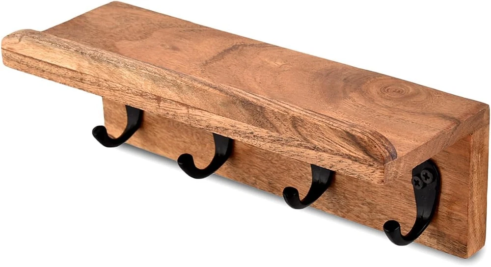 Store New Arrivals Add to Favorite View Feedback Contact Acacia Wood Rustic Key Holder for Wall, Farmhouse Wall Shelf with 4 Hooks for Entryway Farmhouse Kitchen (10" X 3.5" X 3.5") Description Item model number KC677 Part Number KC677 Style Rustic Finish Antique Mounting Type Wall Mount Material Wood Country of Origin India Batteries Required? No Maximum Weight Recommendation 50 Pounds Item Weight 1.32 pounds Number of Hooks 4 Theme Rustic Batteries Included? No Recommended Uses For Product Key Holder, Wall Mount, Wall, Shelf, Holder Finish Type Antique Package Dimensions 10.75 x 4.13 x 3.82 inches Farmhouse key hooks is made of solid Acacia wood with fine workmanship, helping you to organize small items and blends well with any home decor style. The mail and key holder includes 4 wooden hooks that can hold coats,scarf, bags,sunglasses,umbrella, etc.There is also a shelf space to place letters,cards,magazine,smartphone,wallet,small accessories. The wall-mounted design makes it better to use and save space, keep your items organized! Can be used in the entryway,apartment,farmhouse,kitchen and bedroom Fashionable styling and retro colors is perfect fit to your farmhouse decor and a real eye-catcher in your home. This wall key hanger is not only for keys but for everything you grab and go on a busy day. Not only a good key hanger but also perfect to store letters, bills, newspaper, dog leash, caps, and so on. Size(Inch): 10" x 3.5" x 3.5", Size(Cm): 25.4cm x 8.89cm x 8.89cm The wall key holder in the entrance to place letters, keys and other necessary items for going out. Save your time and make your life more easy and efficient. The wall key shelf with hooks holds shampoo, face wash, shaving cream, towels in the bathroom. No more worrying about a cluttered bathroom counter. In the living area, keys holder may be used to keep the most recent publications, newspapers, magazines, vases, and potted plants. The impact of wall decoration is that it widens the area that allows you to rise to the ending point. Policy on Product Sourcing and Fulfillment Dear Valued Customers, We would like to clarify an important aspect of our business operations to ensure transparency and trust in our relationship with you. Product Fulfillment: Fulfillment by Amazon (FBA): The products are stored in Amazon Fulfillment Centers. This storage solution ensures that the inventory is kept in a secure and climate-controlled environment, which helps maintain the quality and safety of the products. Efficient Delivery: Utilizing Amazon's fulfillment services allows us to leverage their robust logistics network to provide you with fast and reliable shipping. This means you receive your purchases in a timely manner with the added assurance of Amazon's trusted delivery systems. Customer Assurance: Quality Control: Every product is carefully selected and undergoes rigorous quality checks before being listed for sale. Our commitment is to provide you with high-quality items that meet your expectations. Secure Storage: Amazon's Fulfillment Centers are renowned for their high standards of security and efficiency. Your products are stored safely until they are shipped to you. Customer Support: Should you have any questions or concerns regarding your purchase, our customer support team is readily available to assist you. We are dedicated to ensuring your satisfaction with every transaction. We appreciate your business and are committed to providing you with a seamless and satisfactory shopping experience. Thank you for your trust and understanding. Sincerely, -Manager- Shipping Policy and Expectations Dear Valued Customers, We are committed to ensuring that your package arrives as quickly as possible. However, we kindly ask for your understanding regarding certain factors that may occasionally affect shipping times. Our Commitment: Prompt Processing: We strive to process and dispatch your orders promptly to minimize any delays. Reliable Shipping Partners: We work with reputable shipping companies to ensure your packages are handled with care and delivered efficiently. External Factors: While we do everything within our power to expedite your order, please note that some factors are beyond our control: Weather Conditions: Severe weather can impact shipping routes and cause delays. High Postal Traffic: During peak seasons, such as holidays, the increased volume of packages can lead to longer delivery times. Shipping Company Performance: The performance and schedules of shipping companies may vary, potentially affecting delivery times. We appreciate your patience and understanding in these situations. Rest assured, we are doing everything possible to get your package to you as soon as possible. Customer Support: If you have any questions or concerns about your order, please do not hesitate to contact us. Our customer support team is here to assist you and provide any necessary updates on your shipment. Thank you for your trust and continued business. Shipping Policy and Customer Satisfaction Shipping Information: Service Area: We offer shipping to the lower 47 states. Please confirm with us about the delivery date before completing your purchase. Thank you. Address Requirements: We do not accept P.O. Boxes. Please provide a physical address for delivery. Shipping Restrictions: Unfortunately, we are unable to ship items to the state of Ohio and California due to shipping agreements and restrictions. International Shipping: eBay International Shipping Hub: For shipping outside of the continental USA, we only use eBay's International Shipping Hub. The item is shipped to Illinois and then sent to the rest of the world. Duties and Taxes: International customers are responsible for all duties and taxes. Please continue to check out to calculate the shipping costs for your country. Inquiries: Messages regarding eBay's International Shipping Program must be directed to eBay exclusively. Customer Satisfaction: We try our very best to ensure ev