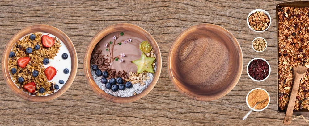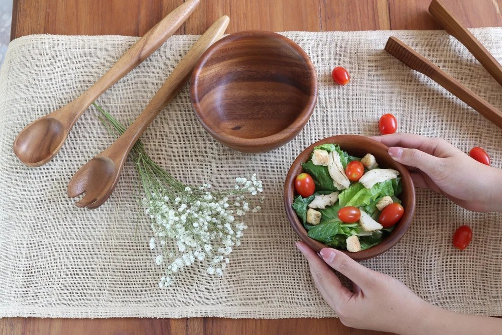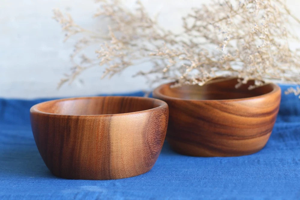 DIMENSIONS: 6" x 6" x 3" (each bowl) DELUXE QUALITY: Luxurious feel and delicately hued toned, hand crafted by the finest master craftsmen using only time-honored traditional methods and techniques. HANDMADE & FULLY SUSTAINABLE: Run on a fair trade policy using premium grade monkeypod wood using only holistic and eco-friendly processes. Wash in warm water with mild dish soap. You can use a soft sponge or a dish brush with gentle bristles for tougher scrubbing. Do not soak in water. Prolonged soaking can cause the wood to warp. Do not wash in the dishwasher and avoid the high heat and harsh detergents. If dry, dab a little a food-safe mineral oil or beeswax conditioner and rub it into the wood. Additional tips: Exercise greater care with other liquids such as alcohol or perfume as excessive exposure can pull moisture from the wood & lead to cracking. By following these simple steps, you can ensure your wooden utensils become cherished companions in your kitchen for years to come.