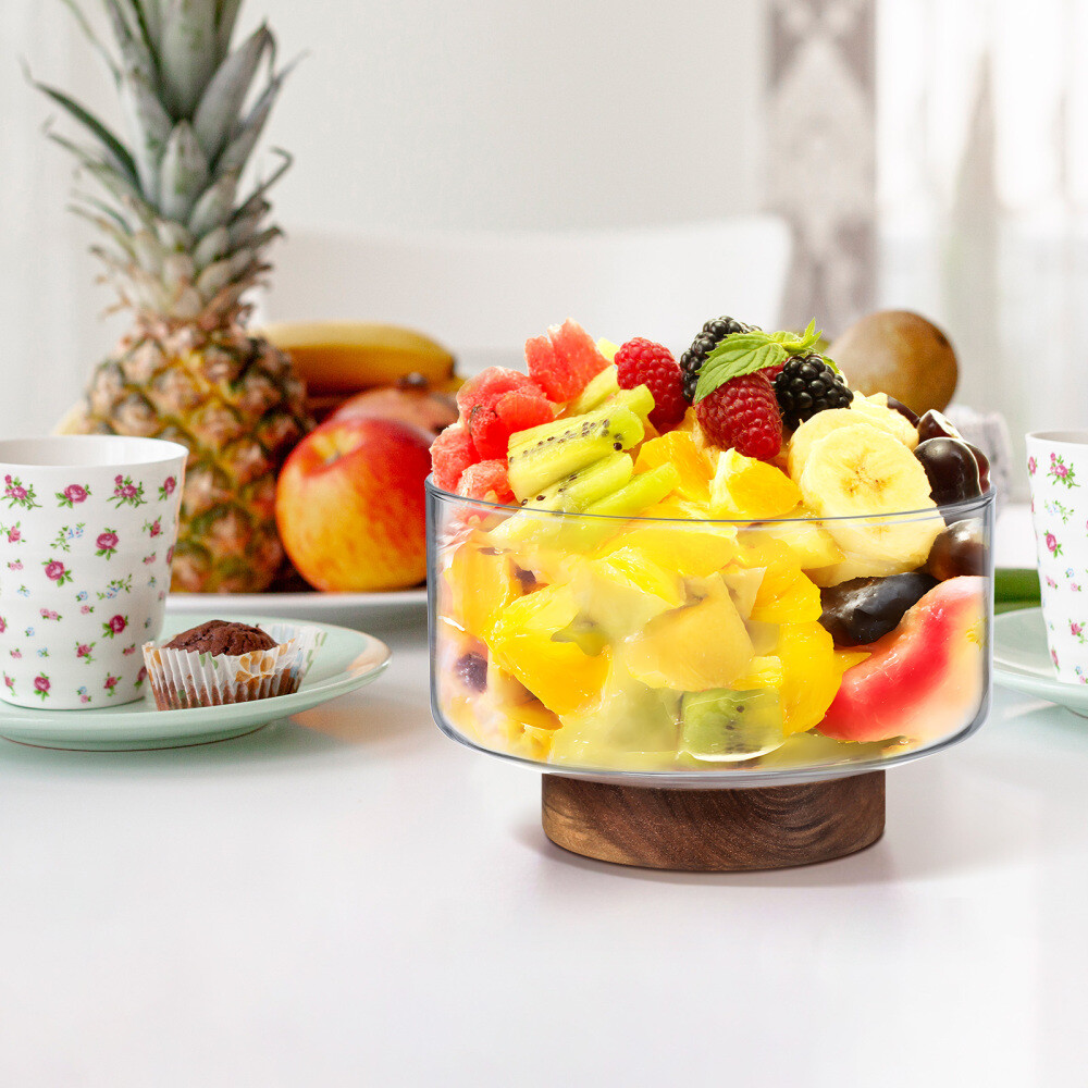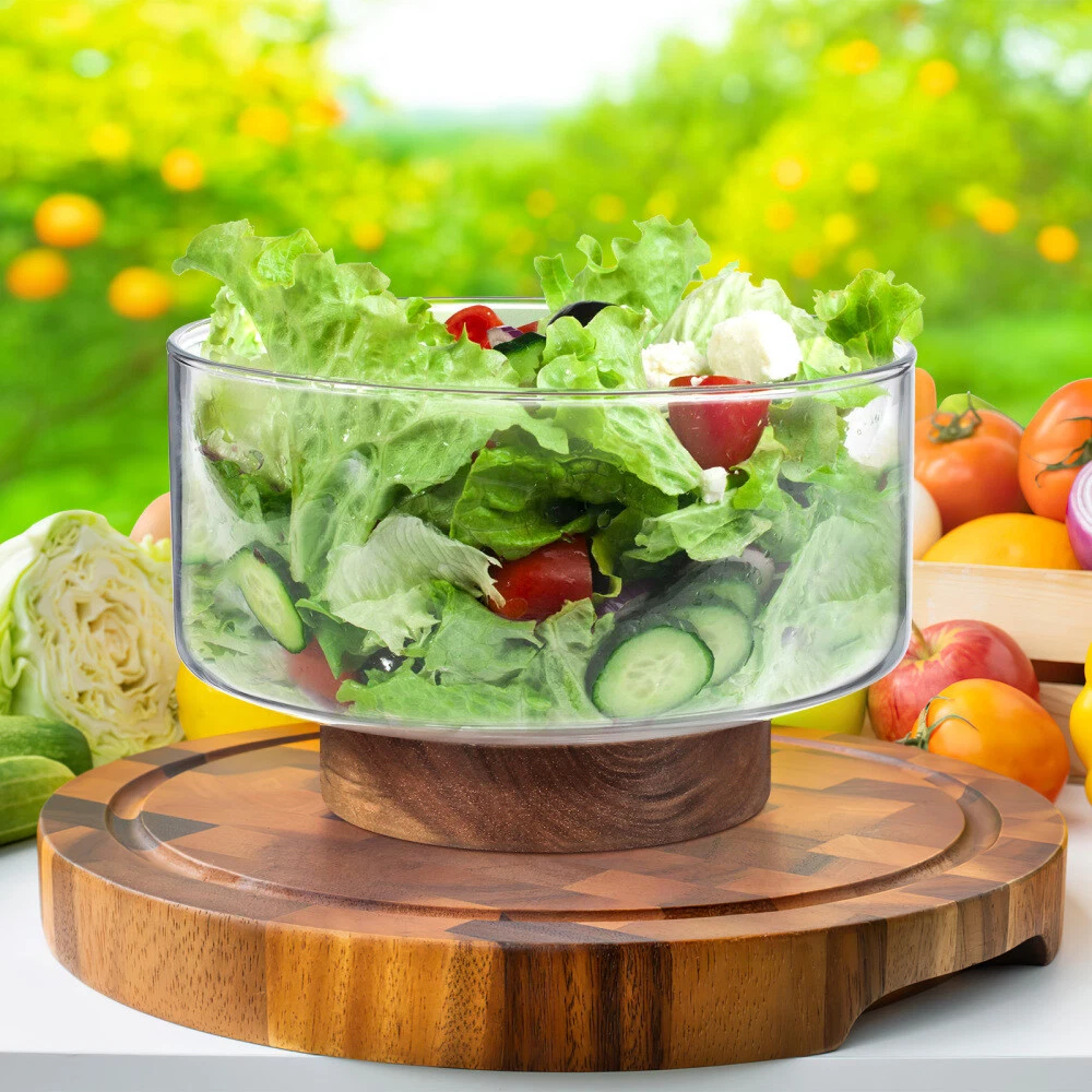 Absolutely love this Acacia salad set! The wood feels smooth and sturdy, perfect for serving fresh fruits or snacks. The glass bowl is a great size—not too big, not too small—and looks elegant on any table. Easy to clean and adds a natural, rustic charm to meals. Highly recommend for anyone who enjoys stylish yet functional serving pieces!
