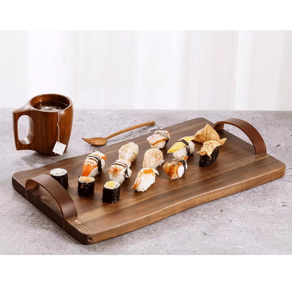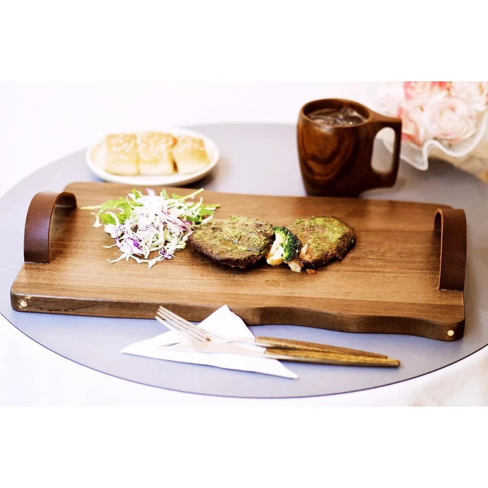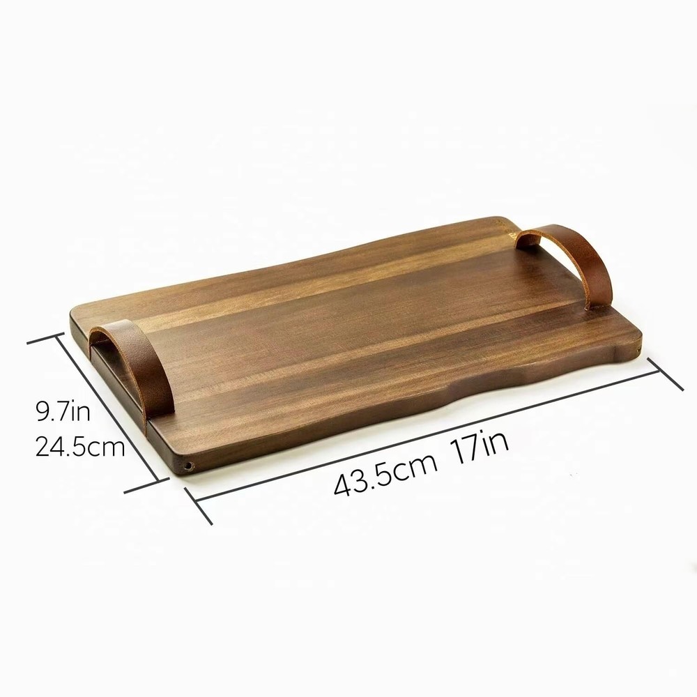 Vintage Leather-Handle Wooden Tray – 17" Multi-Purpose Cutting Board for Serving, Charcuterie, Tea & Bread, Stylish Home Kitchen Accessory 【Unique Design】: Our wooden trays are handcrafted by skilled artisans, featuring elegantly curved edges, distinctive wood grains, and leather handles. This combination ensures each tray is both stable and stylish, making every piece truly unique and elegant. 【Versatile Display】: This wooden tray boasts a wide array of usage scenarios. It is not only ideal for serving cookies, fruits, vegetables, deli meats, and other dishes, but also serves as a decorative element for kitchens, living rooms, dining areas, birthday parties, anniversaries, candlelit dinners, and more. 【Food Tray】: This tray can be used to serve food, whether it's for entertaining family and friends, or simply enjoying a delicious meal away from the dining table. It is a classic choice for transporting food and beverages. 【New Home Gift】: These dining plate are the perfect kitchen gift for friends, weddings, chefs, new homes, and more! These entertainment utensils are the perfect must-have for hosting parties. 【Durable and Long-lasting】: Crafted from acacia wood, it can be used as a cutting board. Thick and sturdy, yet sufficiently soft to prevent damage to knives even when cutting heavy meats or firm vegetables. 【Easy to Clean】: Simply wash with mild soapy water or clean water, then dry with a clean cloth to ensure maximum comfort. Wooden dinner plates with leather handles, steak plates, cooked food plates, Chopping Board, Cutting Board, food plates specially designed for serving cheese, meat and snacks, as well as decorative party service trays, are 17 inches long and 9.7 inches wide. SHIPPING Domestic Buyers - We have confidence in our products, but if you are not fully satisfied please contact us within 30 days of purchase and you will get full refund. - We ship within 3 business days of payment, usually sooner - We offer FREE shipping on all orders! - We only ship to the lower 48 states, no APO/FPO addresses or PO Boxes allowed International buyers – please note: Import duties, taxes, and charges aren't included in the item price or postage cost. These charges are the buyer's responsibility. - Please check with your country's customs office to determine what these additional costs will be prior to bidding or buying. * Order Cancellation Policy ** You can return a product for up to 30 days from the date you purchased it. 1. The seller reserves the right to cancel the special case only due to eBay cancellation fee. 2. The decision of seller is the final. 3. The seller will respond to the cancellation request within 2 business days. Please wait for the result of cancellation. 4. In case the cancellation is not completed by some reasons, the buyer can follow the options below to get the refund. 4.1 The buyer can reject the item when it arrives. 4.2 The buyer can send the item back to the seller within 30 days If the buyer receives item (USA Shipment ONLY). The seller will provide the FREE return label to the buyer when the buyer opens " Return Item" case on eBay by using the reason as "Change my mind" ONLY. 5. When buyer has placed the order. The order will be processed and completed by automatic warehouse system within 5 minutes. In case that buyer sends the cancellation request after 5 minutes of placing the order, the request will be rejected. **Sending direct message to cancel the order is not allowed for every case.* Return Policy For the return case - If buyer would like to return the items for refund or replacement, please CONTACT SELLER to receive the free return label from seller. The refund or replacement will be processed with the tracking number of return label which is provided by seller only. The other ways of return which are not approved by seller will not be processed for the refund or replacement.