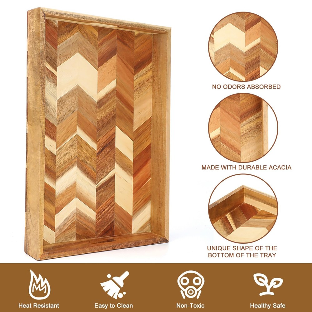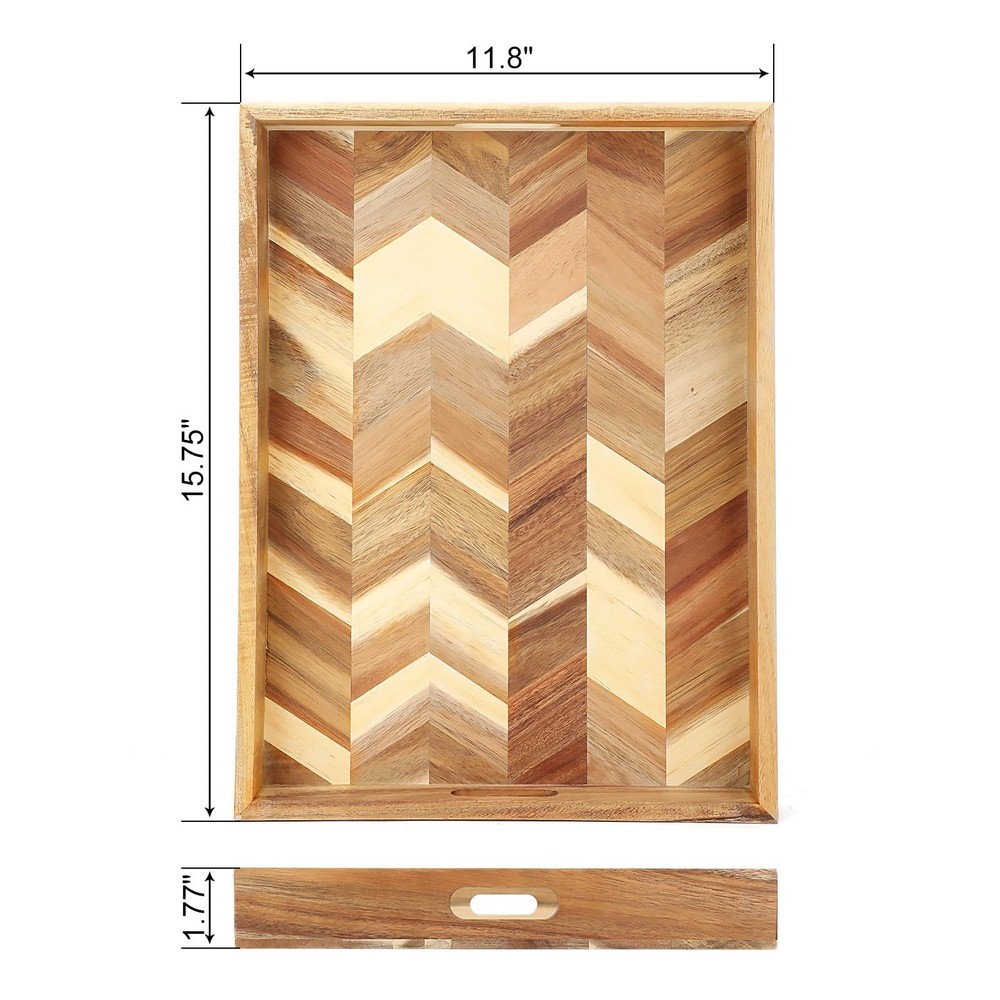 1 Made of Acacia Wood - Elevate your dining experience with the serving tray in smooth Acacia wood, a captivating addition that blends style and functionality seamlessly. Rectangular Shape & Colorful Bottom - Meticulously crafted with attention to detail, this rectangular tray with colorful bottom showcases the natural beauty of acacia wood, exuding a warm and inviting charm that complements any occasion. Decorative Serving Tray - This contemporary wooden tray with Colorful bottom is a great option for hosting and would also be ideal for styling up with a candle, some flowers in a vase or a photo frame. Whether hosting a lavish dinner party or serving breakfast in bed, the Serving Tray becomes the perfect companion for presenting your culinary delights with finesse. Ottoman Tray for Living Room - Enhance your living room decor by using our tray atop your ottoman. It provides a stable surface for drinks, snacks, or decorative items and harmoniously blends with any setting. Convenient Carry Handles Built In โ Its convenient handles add a touch of practicality, making serving effortless and stylish. We recommend cleaning with a damp cloth. Search terms :wooden trays for food breakfast tray wooden tray for ottoman table trays decorative wooden serving trays large serving tray bamboo tray table tray kitchen tray trays trays for eating wood tray for kitchen counter wooden tray with handles couch tray table bed trays for eating large tray lap trays for eating on couch food tray for bed serving platters and trays wooden trays tray decor wood tray with handles serving platter acacia wood serving tray wood trays wood serving tray with handle charcuterie board with handles couch table tray acacia wood tray lunch tray wooden tray for kitchen counter tray for couch ottoman tray large dinner trays trays for decor Search Terms : decorative trays wooden food tray wood trays for food wood tray for ottoman serving trays with handles food trays tray for ottoman tray with handles eating tray appetizer serving tray food serving tray small tray platter small wooden tray large ottoman tray coffee table tray rectangle bed tray decor large wood tray ottoman table tray ottoman trays acacia wood wooden serving tray with handle trays for coffee table small serving tray sofa tray wood serving trays breakfast trays for bed wood decorative tray wooden decorative tray serving tray for ottoman tray tables Search Terms: party trays and platters wooden boards for serving food eating trays for living room coffee tray for coffee bar unfinished wood tray