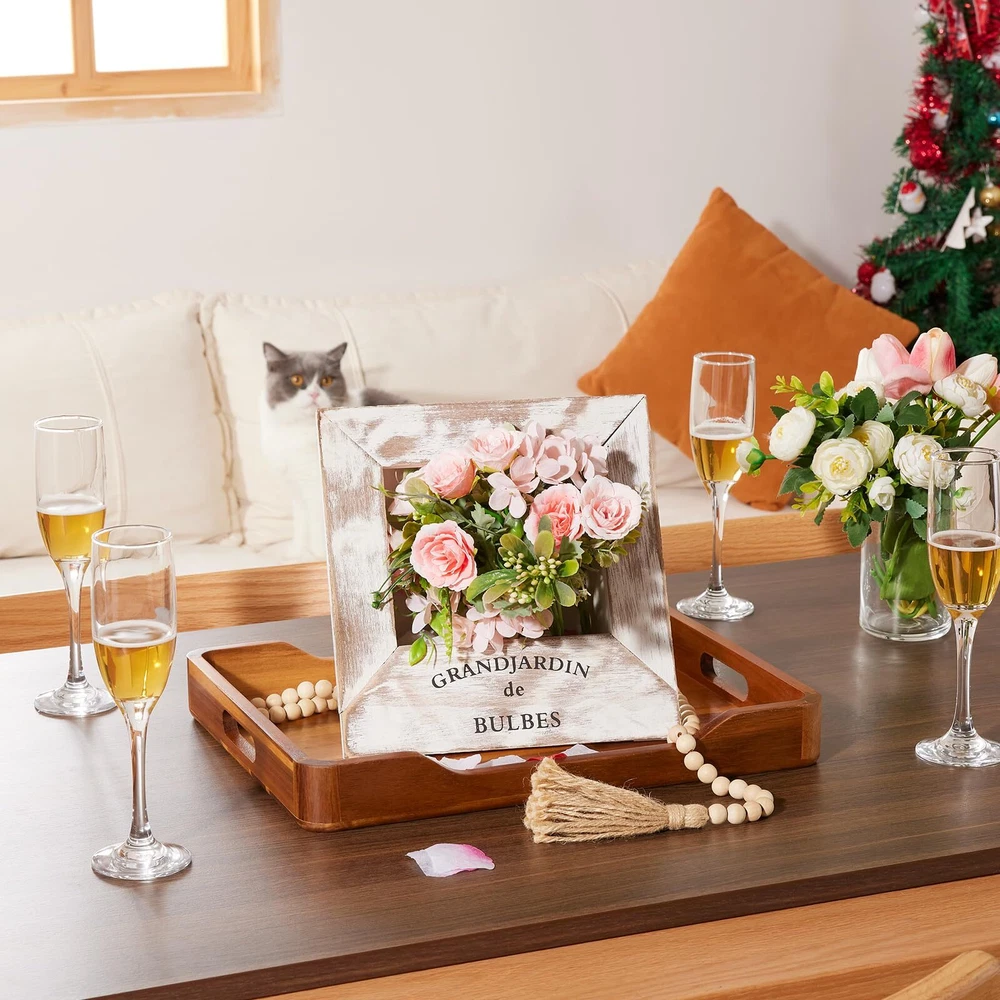 eBay Product Listing Welcome to Our Store! Acacia Wood Serving Tray with Handles, Rectangular Decorative Ottoman Serving Tray, Large Food Drinks Tray for Breakfast in Bed, Living Room, Coffee Table,16x12 inch Description Features 【High Quality 】- The decorative serving tray is made of high-quality acacia wood,sturdy and durable.The acacia wood ensures that the tray remains resistant to wear, and its exquisite wood grain provides a naturally rich and warm aesthetic,serve your favorite food and drink for breakfast in bed, parties or for weddings. 【Large Size and Handles Design】-This beautiful, rectangular serving tray comes with one individual that is 16x12 inches large. Designed with ergonomic grip handles, this tray offer easy transportation from the kitchen to any part of your home, be it the living room, patio, bedroom, or bathroom. Feel confident in your hold, even when the tray is brimming with items. 【Natural & Decorative】- The beautiful intricacies comes with natural wood grain. Being a natural material, they have some biophilic appeal. When it comes to the look of them, wooden trays can sit as nicely on coffee tables and mantlepieces as they do on your lap as TV dinner trays. 【Functional and Versatility】-This wood serving tray is ideal for serving breakfast in bed, lunch, dinner, snacks and any meal. store and organize all of your daily essential's such as key's, daily mail, tv remotes, perfume & cologne, makeup, place on bathroom vanity. and it can be used as TV dinner trays, fruit tray, bed table tray, bathroom tray, vanity tray and many other uses. Great for farmhouse, modern, or vintage homes. 【Great Gift Choice】-The decorative tray for yourself or as an original gift idea for a friend or loved one, perfectly for birthdays, weddings, Christmas, housewarming, anniversaries, or other holiday celebrations and more. Return Policy All our products come with a 30-Day Return Policy. If you are not 100% satisfied, please contact us to arrange a return or replacement. We offer free shipping on returns and will provide a prepaid return label. To initiate a return, please contact our customer service team through eBay messaging. We will guide you through the process and ensure your issue is resolved promptly. Shipping Information We ship to the address provided on eBay. Please ensure your address is correct. Delivery usually takes 2-4 business days. If there are any delays, please allow an additional 1-2 business days. We use reliable shipping services such as UPS, FedEx, and USPS. We only ship within the contiguous United States and do not offer local pickups. Shipping is free on all orders, and tracking information will be provided once your order has been shipped. If you have any questions about shipping, please contact us. Contact Us If you have any questions, please contact us via eBay message. We respond within 1 business day. Our customer service team is here to assist you with any inquiries or issues you may have. Customer satisfaction is our top priority, and we are committed to providing you with the best shopping experience. Please do not hesitate to reach out to us. About Us We are committed to providing high-quality products, competitive prices, and excellent customer service. Our goal is to make sure you are completely satisfied with your purchase. Thank you for your business and the opportunity to serve you. We look forward to providing you with the best possible shopping experience.