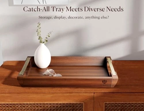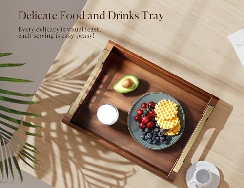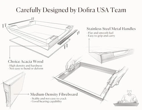 Menu 1. We require immediate payment. 2. We currently accept payment via eBay managed payments only. 3. Once payment is cleared, we will dispatch your shipment within 1-3 business days. Please refer to the "Shipping" tab for more information regarding shipping speed to your destination. Acacia Wood Serving Tray with Metal Handles, 17x13in Large Ottoman Tray, Food Drinks Tray for Coffee Table, Breakfast, Dinner & Bar, Rustic Decorative Tray for Kitchen, Bedroom Gift Box Product description Unbreakable Serving Tray: Premium acacia wood edges articulate tightly to a sturdy MDF bottom, reducing the risk of cracking by 70% compared to solid wood ones. Our strict manufacturing standards ensure a well-made, sturdy wood serving tray that can last for years without chips Stunning and Practical: Serve your meals in style! With a bold collision of warm vintage wood and dark grey metallic glossy, both modern and rustic, cool yet classy, its unique charm makes it fit various home styles. Wide handles and raised edges make serving easy and mess-free Unexpected Gift Idea : Surprise your loved ones with our acacia wood tray with metal handles which full of blessings! With an exquisite gift box, it's the perfect surprise gift for birthdays, housewarmings, weddings, anniversaries, or any other special event Meet All Your Needs: all-in-one tray is large and versatile to handle any task.As a serving tray serves food and drinks at dinner parties, and relish a lazy breakfast in bed! As a sleeper tray for everyday items and plants, or a display storage tray for perfume and jewelry keep everything organized Order with Confidence: Our decorative tray has sanded over 10,000 times, resulting in a flat, velvety smooth finish that won't scratch anything. The wrap-rounded sides and bottom are carefully crafted to prevent leaks and food adhesion, and it's easy to clean with just a damp cloth PLEASE MESSAGE US IF YOU HAVE ANY OTHER QUESTIONS, AND MANY THANKS FOR READING ALL OF THIS. Copyright ©#. All Rights Reserved.