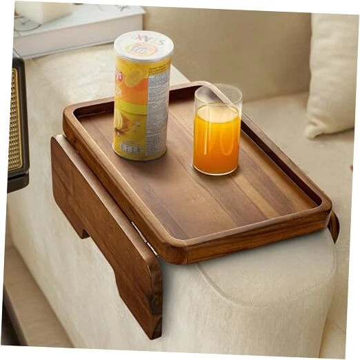 Return Policy Fast Delivery Trusted seller Acacia Wood Sofa Armrest Tray -Double Hinge Sofa Arm Tray Table Clip - Couch Arm Table - Wooden Side Tables for Small Spaces for Eating and Drink (Classic, Acacia) Product Description Double Hinge: Our Couch Arm Side Table with Double Hinges for Super Grip. Combined with the longer Legs they create an even larger gripping surface than similar tv tray tables. With longer legs, friction-generating rubber grips, and double strong hinge, The Couch Arm Tray isn’t just more stable, but it also covers the most arms Gripping, Not Slipping, Most Stable: Our Armrest friction-generating rubber grips do exactly that! They stop your tray table from rolling around so you can sit your drink next to the remote without worry. Elevating the Practicality Further: The design incorporates a strategically placed non-slip mat underneath the tray and on the sides of the legs. This thoughtful inclusion not only prevents unwarranted sliding and movement but also offers protection to your sofa's armrest, ensuring it remains unmarred by scratches or unwanted indentations. This attention to detail emphasizes usability and safeguards the integrity of your furniture. Natural Acacia Wood Construction: The Wood Sofa Armrest Tray Rectangular seamlessly combines durability and aesthetic appeal. This carefully selected wood not only enhances lasting strength but also showcases the innt natural beauty of the material. As a result, the tray not only serves as a functional accessory but also as an elegant piece that adds character to your living space. Thoughtful and Meaningful Gift: Ideal for various occasions, this arm tray serves as a thoughtful and meaningful gift, perfect for housewarmings or birthdays. Its practicality and elegant design make it a unique and appreciated present for loved ones. Shipping Returns Payment Shipping Shipping is FREE to all addresses other than APO/PO boxes in the lower 48 states. All our stock ships from US-based warehouses. Shipped via USPS or UPS (depending on location and package weight) Unless stated otherwise, all orders will ship within 24-72 hours of your payment being processed. Check our feedback to see the great reviews of FAST shipping we offer. Returns Seller does not accept returns Payment We currently accept payment via eBay managed payments only. Once payment is cleared, we will dispatch your shipment within 1-3 business days. Please refer to the "Shipping" tab for more information regarding shipping speed to your destination.
