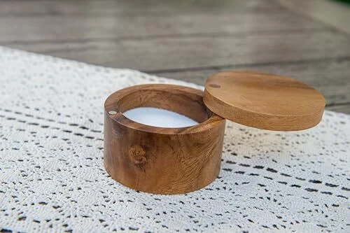 Return Policy Fast Delivery Trusted seller Acacia Wood Salt or Spice Box with Swivel Cover, 3-1/2" x 2-1/2" Product Description Swivel cover offers protection and easy access Store spices, salts or other small household items Made from durable acacia wood Easy to care for and maintain - Hand wash only Measures: 3 1/2" diameter x 2 1/2" Shipping Returns Payment Shipping Shipping is FREE to all addresses other than APO/PO boxes in the lower 48 states. All our stock ships from US-based warehouses. Shipped via USPS or UPS (depending on location and package weight) Unless stated otherwise, all orders will ship within 24-72 hours of your payment being processed. Check our feedback to see the great reviews of FAST shipping we offer. Returns Seller does not accept returns Payment We currently accept payment via eBay managed payments only. Once payment is cleared, we will dispatch your shipment within 1-3 business days. Please refer to the "Shipping" tab for more information regarding shipping speed to your destination.