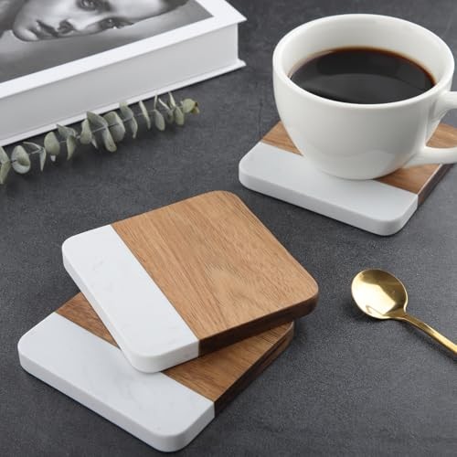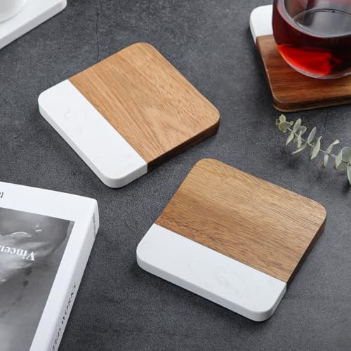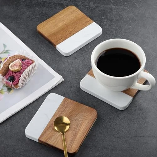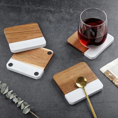 Return Policy Fast Delivery Trusted seller Acacia Wood Marble Coasters for Drinks Set of 4, Square Non-Slip Wooden Stone Coaster Coffee Table Accessories Manly Coaster for Men Coffee Table, Bar, Office - Rustic Modern Style Product Description Luxury Material Combo: Handcrafted from genuine acacia wood and premium marble – built to last with striking visual appeal. Non-Slip Stability: 4 rubber feet per coaster prevent sliding and protect delicate surfaces from scratches. Perfect Size & Shape: 3.94in square design fits most mugs, glasses, and tumblers without crowding your table. Style Versatility: Blends rustic warmth with modern edge – ideal for coffee tables, home bars, offices, or man caves. Practical Protection: Shields furniture from heat marks, condensation rings, and spills. Easy to wipe clean! Shipping Returns Payment Shipping Shipping is FREE to all addresses other than APO/PO boxes in the lower 48 states. All our stock ships from US-based warehouses. Shipped via USPS or UPS (depending on location and package weight) Unless stated otherwise, all orders will ship within 24-72 hours of your payment being processed. Check our feedback to see the great reviews of FAST shipping we offer. Returns Seller does not accept returns Payment We currently accept payment via eBay managed payments only. Once payment is cleared, we will dispatch your shipment within 1-3 business days. Please refer to the "Shipping" tab for more information regarding shipping speed to your destination.