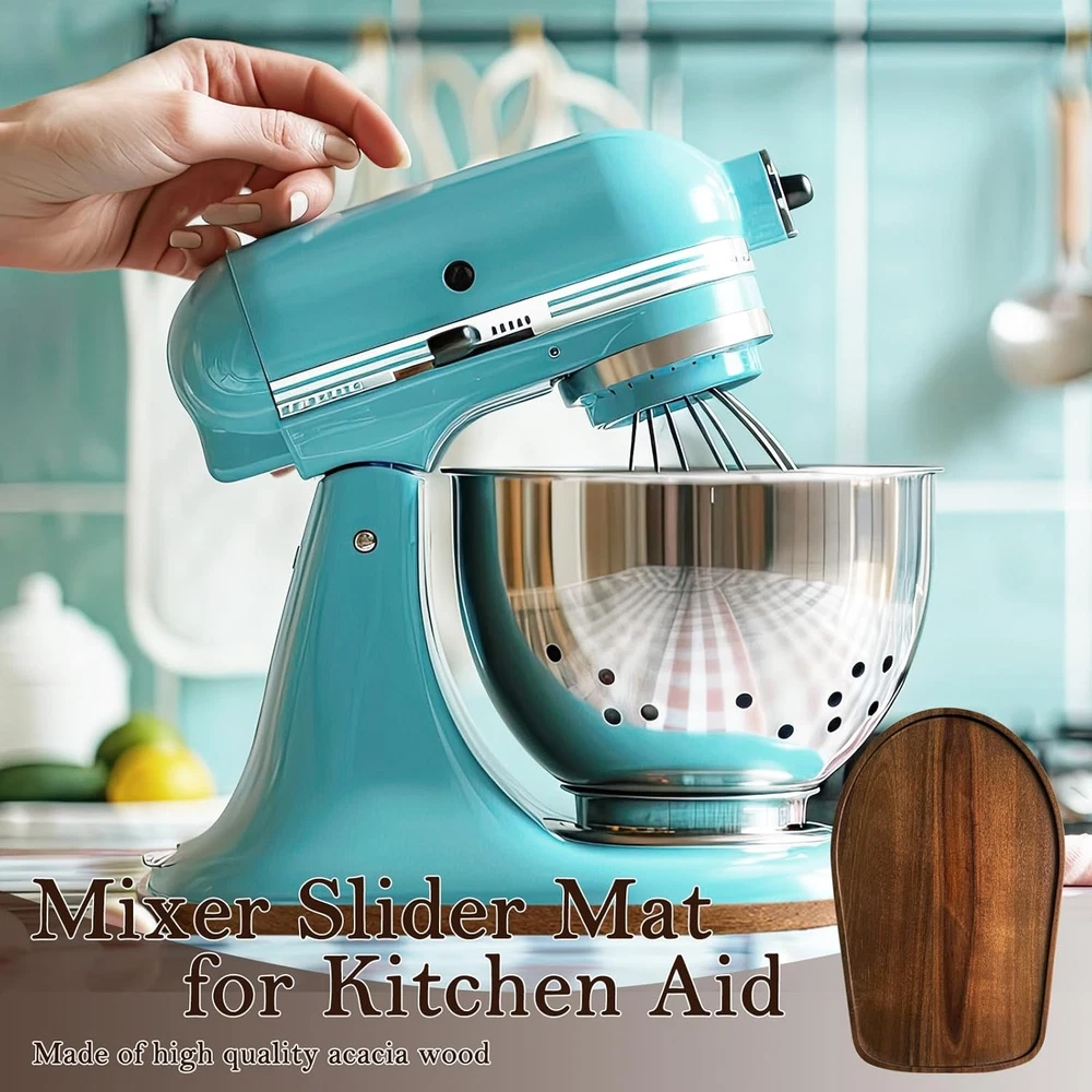 Material: We upgraded the material of the kitchen aid mixer slider to acacia wood, which is stronger and less likely to crack Easy to use: The mixer slider mat allows you to move your Kitchen Aid mixer easily, place the mixer on it and then simply push or pull the mixer Compatibility: Kitchen aid mixer sliding mat is oval in shape, and it is compatible with the Kitchen Aid Tilt Head 4.5-5 QT mixer. please note that your mixer model matches before purchase Kitchen Helper: Whether you put the blender in the corner or in a low cabinet, the sliding mat can help you move your mixer quickly and easily, and also prevent the countertop from being scratched by the mixer Great Gift: Our sliding mat for kitchen aid mixer is a sweet gift for mothers and housewife on Christmas, Mother's Day, Thanksgiving and birthday