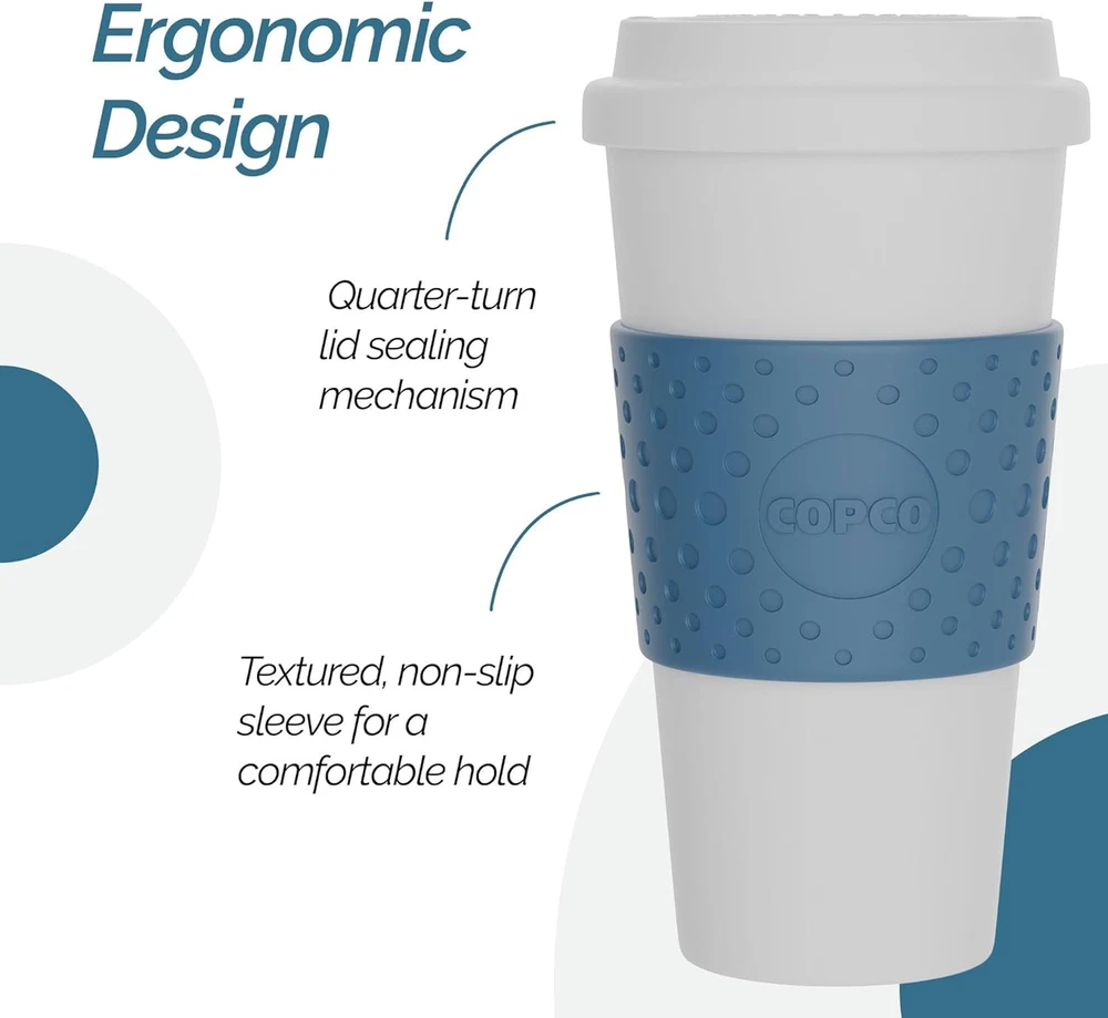 INSULATED: double-walled construction keeps drinks hot or cold SMART DESIGN: lid features a quarter-turn sealing mechanism that helps prevent leaks and spills; nonslip sleeve provides a secure grip and protects hands from the hot mug DURABLE and SAFE: made from sturdy materials that stand up to daily use Fits most cup holders USE and CARE: microwave safe for easy reheating; dishwasher safe for quick cleanup "The Copco Acadia Travel Mug is designed to make enjoying your favorite beverages on the go convenient and reliable. With a 16oz capacity, this travel mug features a double-walled, insulated design that helps maintain the temperature of your drinks, whether hot or cold. Whether you're headed to work with your morning coffee or carrying an iced drink during the afternoon, this mug offers a reliable way to keep your beverage at the temperature you desire. The spill-resistant design is complemented by a quarter-turn, leak-proof lid, which secures tightly to prevent leaks or accidental spills. This makes it a practical choice for busy commutes, travel, or carrying in a bag. You can confidently bring it with you wherever you go, knowing that your drink will stay contained and easy to access. The non-slip, textured sleeve provides a stable grip, reducing the chances of accidental slips or spills. Additionally, the ergonomic shape is designed to fit in most standard car cup holders, making it a great companion for those who are often on the road. Whether you’re commuting to work, heading out for errands, or taking a road trip, this mug ensures you always have your drink within reach. Made from durable, BPA-free plastic, this reusable travel mug is not only built to withstand daily use but also helps reduce reliance on single-use cups. It’s an ideal option for anyone looking for a sustainable, reusable mug that fits seamlessly into a busy lifestyle, all while helping to minimize waste. The Copco Acadia is available in vibrant colors, making it a functional yet stylish addition to your routine."