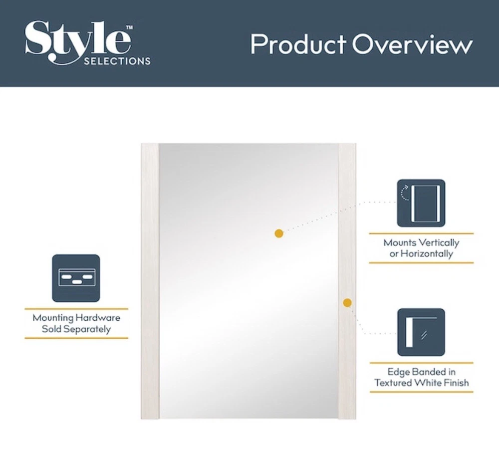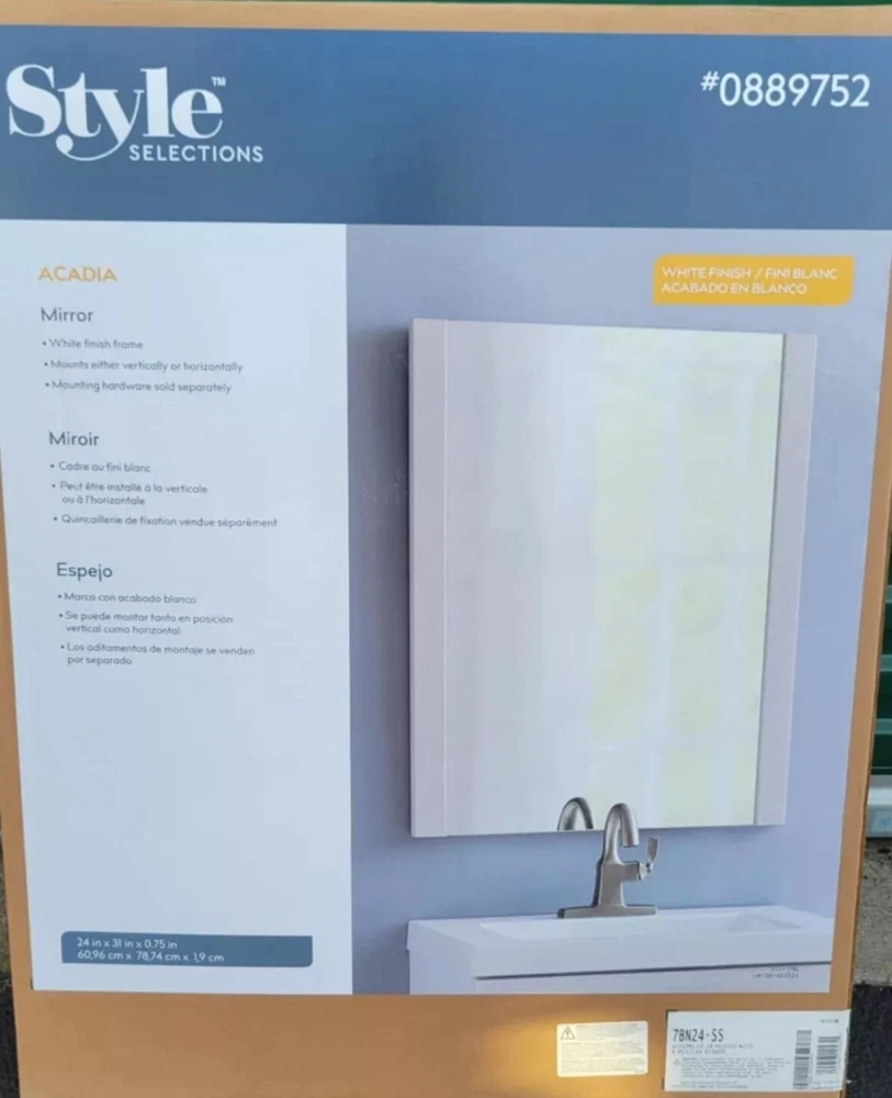 This Style Selections Acadia mirror frame is the perfect addition to any home decor. Measuring 24 inches in height and 32 inches in width, it provides ample space for your favorite memories. The mirror frame comes in a sleek white finish that will complement any room in your home. With features like a mirror frame, this item is not only functional but also stylish. The item width, both interior and exterior, is 32 inches, and the item length is 31 inches. The item diameter, both interior and exterior, is also 32 inches. The brand, Style Selections, is known for its quality products that are designed to last. Add this mirror frame to your collection today and enjoy the beauty it brings to your home.
