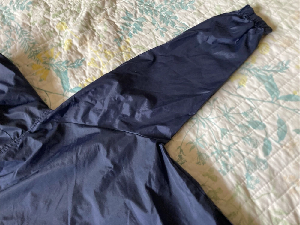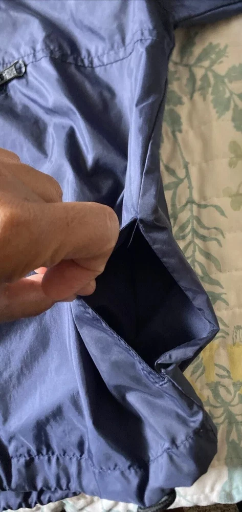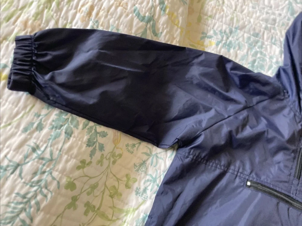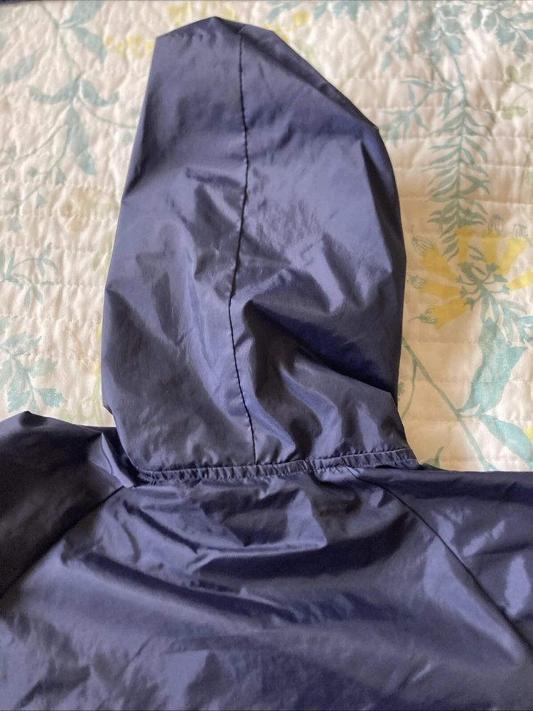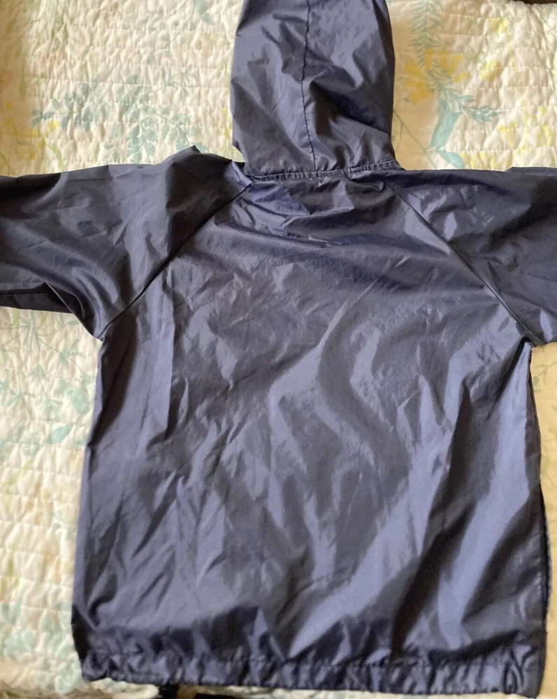 Preowned with light wear and fade. Light thin windbreaker rain jacket; water resistent. Closest in color to first pic. There is a name written on back of Tag. Tag says XS 5/6 but measurements are as follows. Pit to pit measures about 17”, top to bottom length measures about 21” and sleeve length measures about 19”. Check condition and sizing; no returns.