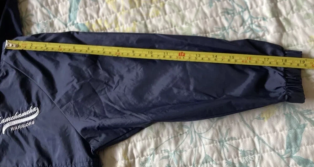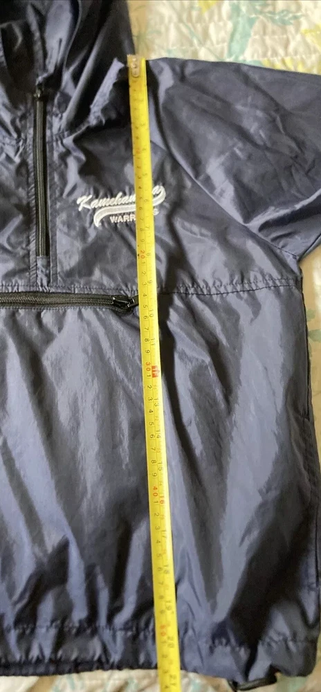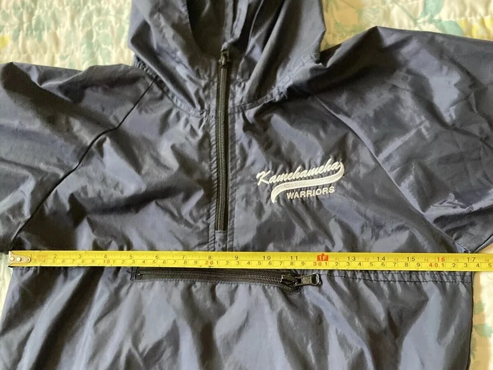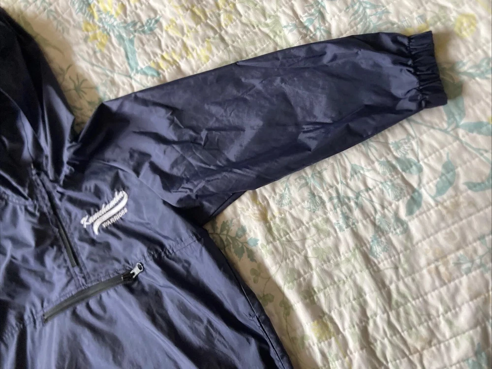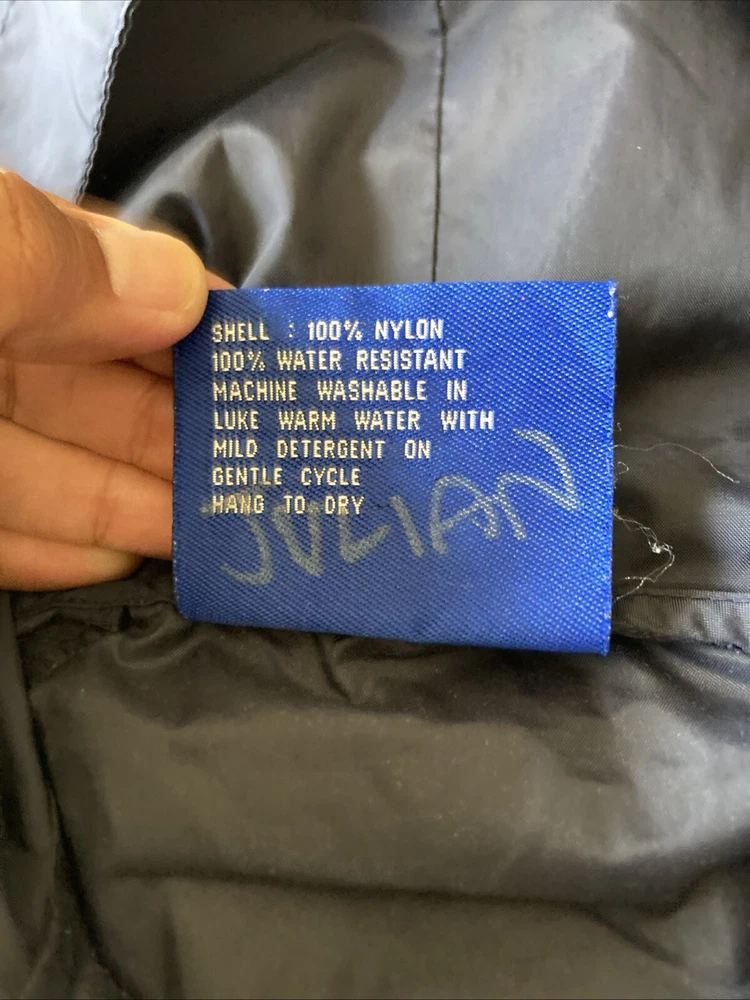 Preowned with light wear and fade. Light thin windbreaker rain jacket; water resistent. Closest in color to first pic. There is a name written on back of Tag. Tag says XS 5/6 but measurements are as follows. Pit to pit measures about 17”, top to bottom length measures about 21” and sleeve length measures about 19”. Check condition and sizing; no returns.