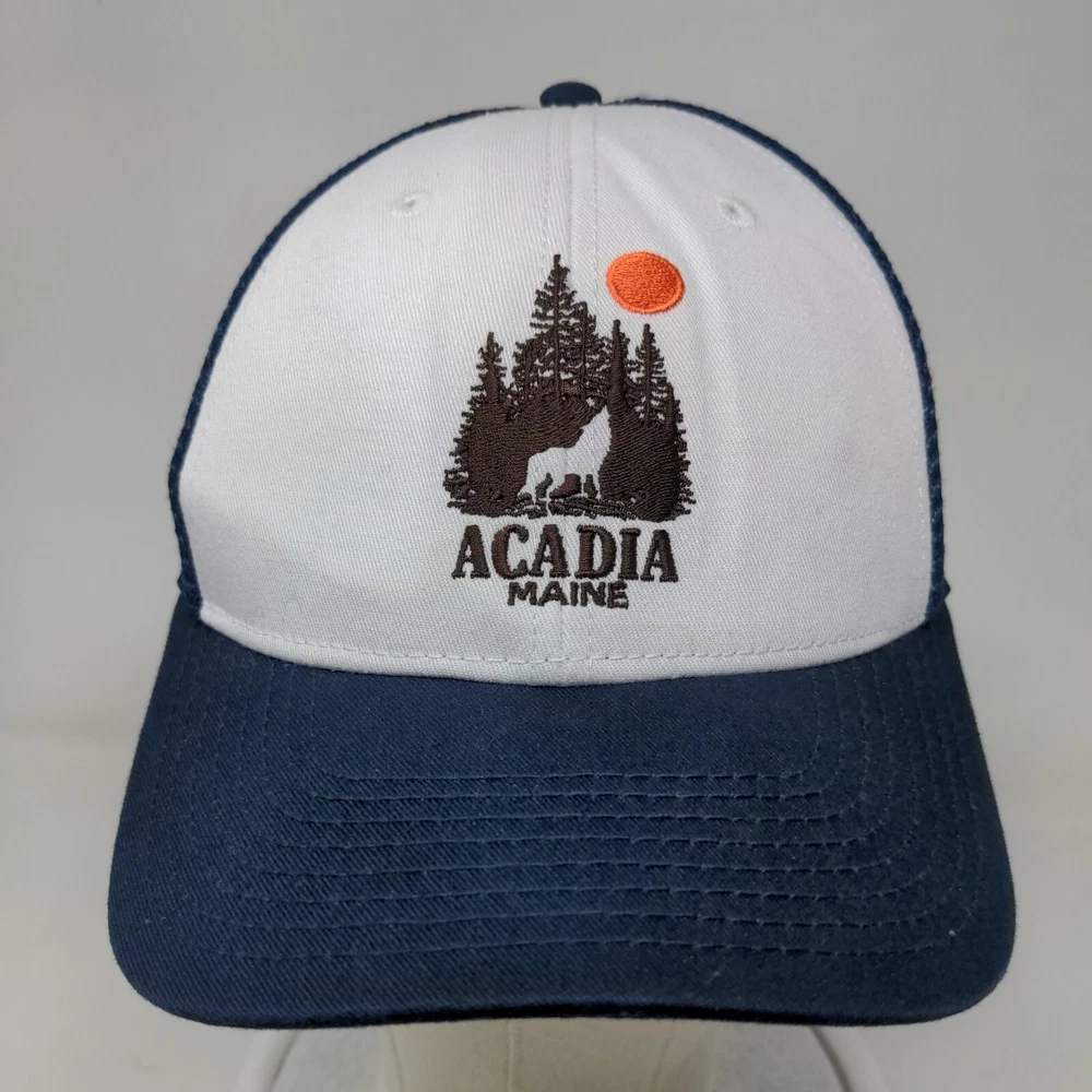 Acadia Maine Fitted Trucker Hat Blue Medium Mesh Back Embroidered Condition: This Unbranded Hat has blemishes on the outside. Sold as pictured, thanks for looking! - See Multiple Items You Like? We Can Do Bundle Shipping! -We ship items out EVERY BUSINESS DAY so EXPECT a QUICK delivery! -Please feel free to ask any questions you may have we answer most questions instantly! -Thank you for supporting Red Frog Goods! 2-1.10