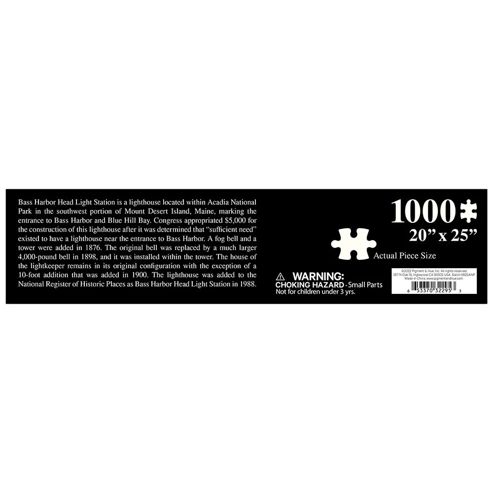 Welcome! This listing is for a brand new Pigment & Hue 1000 piece puzzle of Maine's Acadia National Park and Bass Harbor lighthouse. Finished size is 20" x 25" Puzzle pieces are approximately 1" square. Educational information about Acadia National Park and Bass Harbor Head Light Station is printed on the side of the box. Pigment & Hue's puzzle line features selected fascinating images. You'll love the rich colors and sturdy pieces printed with safe non-toxic colors. Pigment & Hue's puzzles are high quality jigsaw puzzles with crisp edges and cleanly cut pieces. Shipping is free in the USA Shipping: We will ship within 1 business day after payment is received. We are in the Eastern Time Zone. We will happily combine shipping when we have more than one listing and you win the auctions. We only ship to verified addresses. We will ship International orders via the method you choose. Your shipping charges will be calculated for you.