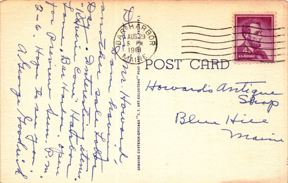MAKE AN OFFER. THE MORE YOU BUY THE BETTER DEAL I WILL ACCEPT The postcard features a view of Great Head from Thunder Hole in Acadia National Park on Mt. Desert Island, Maine. Acadia National Park is known for its stunning coastal views, granite peaks, and diverse wildlife. Thunder Hole is a popular spot where waves crash against the rocks, creating a thunderous sound. Bar Harbor, a town on Mt.