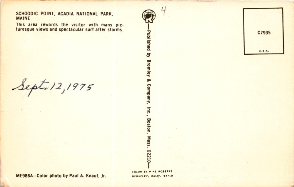 MAKE AN OFFER. THE MORE YOU BUY THE BETTER DEAL I WILL ACCEPT The postcard features a color photo of Schoodic Point in Acadia National Park on Mt. Desert Island, Maine. Acadia National Park is a stunning coastal park known for its rugged beauty, diverse wildlife, and granite peaks. Schoodic Point is located on the Schoodic Peninsula, which is part of Acadia National Park but located on the mainland.