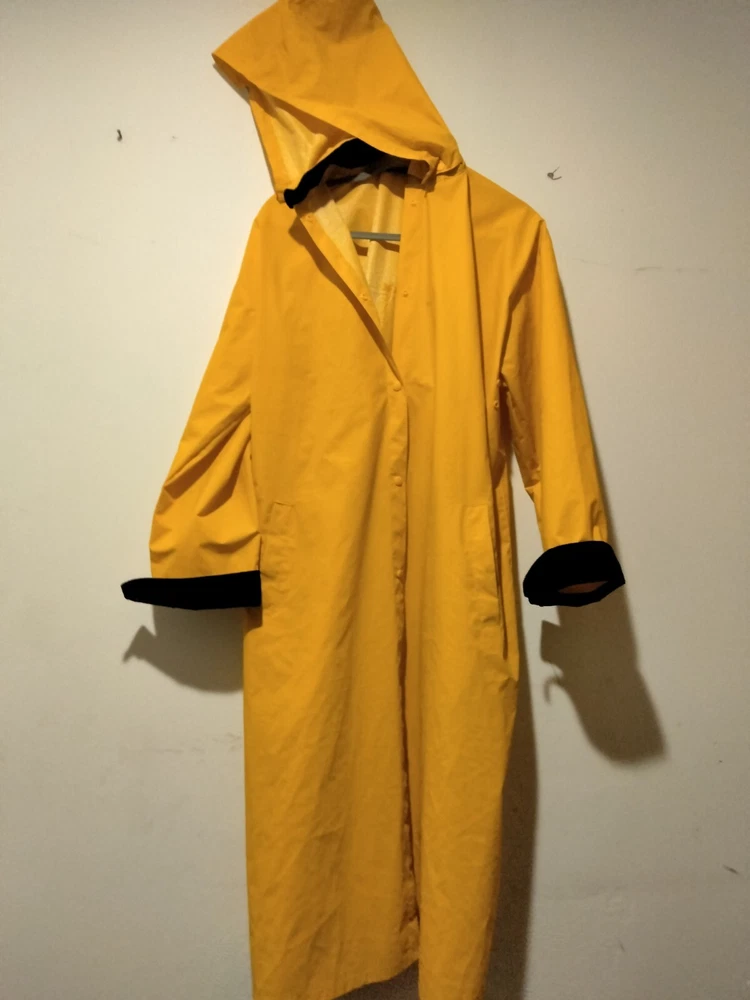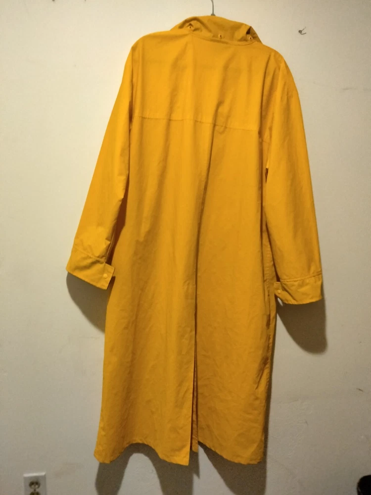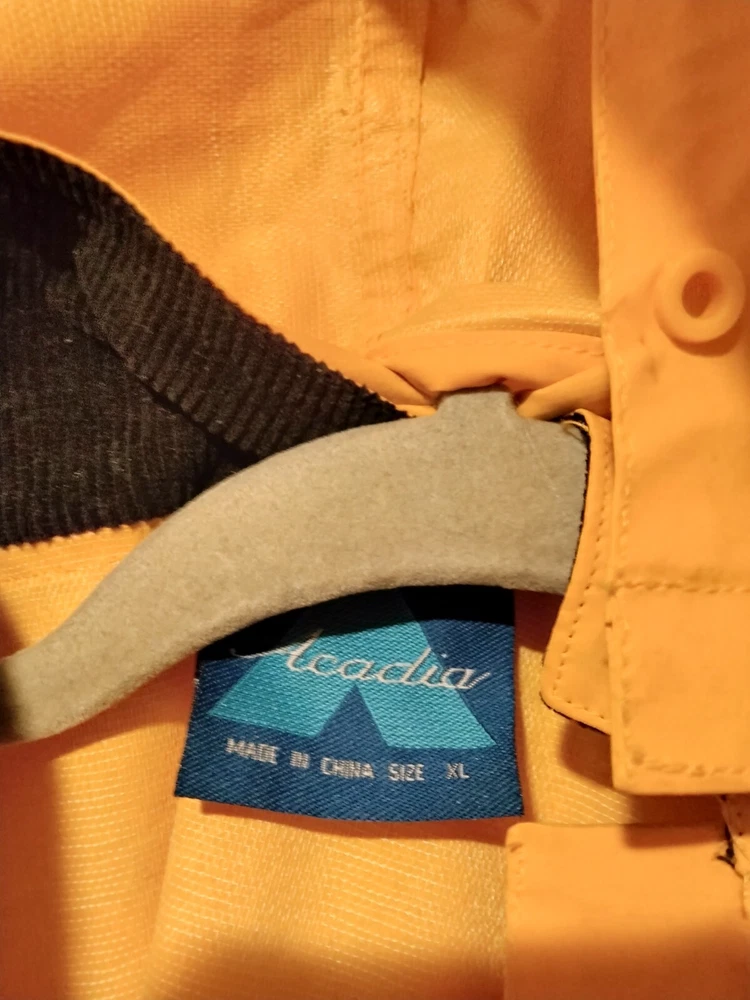 This Acadia Raincoat is perfect for any outdoor activity, whether it's walking, hunting, golf, or hiking. The coat is made of PVC and polyester fabric, with a corduroy stand-up collar and trim cuffs for added style. It features a button closure and hood for protection from the elements, as well as felt cuffs for extra warmth. The raincoat is available in XL size with a regular fit, and is suitable for big and tall men. The garment care instructions recommend hand wash only. The coat is part of the Acadia Raincoat product line, and is designed with a nature theme. Made in China, this coat is ideal for travel, casual wear, and workwear.