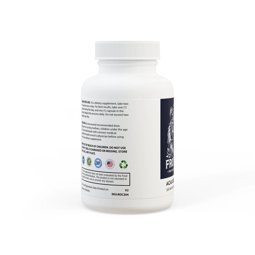 The Acai Berry Complex Supplement supports healthy bowel movements with a blend of key ingredients, including Psyllium Powder, Acai Berry Fruit Extract, Inulin, Slippery Elm Bark, Aloe Ferox Powder 18%, Chlorella, Black Walnut Hulls Powder, Ginger Root, Hyssop Leaf, Papaya Fruit Powder, and Lycopene 5% -- all masterfully balanced in a potent blend that you can easily incorporate in your regimen. Capsuled in the USA with globally sourced ingredients at FDA-registered and GMP-certified facilities, the supplement has undergone third-party laboratory testing. This non-GMO supplement is lactose-free, vegan-friendly, and vegetarian so that you can enjoy its perks with total peace of mind. Ingredients : Psyllium Powder, Acai Berry Fruit Extract, Inulin, Slippery Elm Bark, Aloe Ferox Powder 18%, Chlorella, Black Walnut Hulls Powder, Ginger Root, Hyssop Leaf, Papaya Fruit Powder, and Lycopene 5%. Inactive Ingredients : Cellulose (Vegetable Capsule), Vegetable Magnesium Stearate. Contains : Tree Nuts Please note : Relevant product and manufacturing certificates can be found in downloadable assets after you start designing Please note : This product is shipped only to the United States and their territories Please note: This product is not eligible for publishing on Etsy, Amazon, and TikTok Shop US. More info here . .: Capsuled in the USA with globally sourced ingredients .: Capsuled at FDA-Registered and GMP-Certified Facilities .: 3rd Party Laboratory Tested .: Non-GMO .: Vegan Friendly .: Vegetarian .: Lactose Free .: Design printed on a sticker label .: Please note: This product is shipped only to the United States and their territories .: Please note: This product is not eligible for publishing on Etsy, Amazon, and TikTok Shop US.
