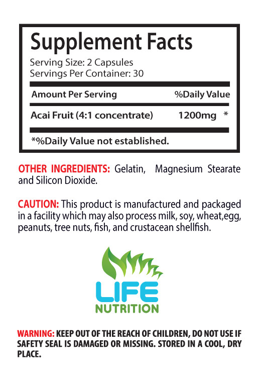 Acai Berry Extract 1200mg 100% Pure Acai Berry Extract 4:1 Boost Body Natural Defenses,Powerful Antioxidant. Helps Regulate Healthy Metabolism, Healthy Weight Loss. Boost Immune System, Detoxify The Body. Organic Natural Aphrodisiac, Fat Burner & Energy Booster. Beautifies The Skin.Promotes Heart Health. 6 Bottles, 360 Capsules Made In USA About Acai Berry Health Benefits: The Acai Berry originates from Acai palm trees found in Central and South American rainforests. They grow in swamps and floodplains. The genus Euterpe has 8 species of palm, with the Acai palm being one of them. Scientifically known as Euterpe Oleracea, the name Acai was derived from the Tupian word, wasa'i, which means 'fruit that expels water'. The genus Euterpe was named after the Euterpe of Greek mythology and all species of Euterpe can grow up to 30 meters high, with leaves up to 3 meters long.The acai berry grows in the wild and are harvested daily. This fruit is 10% pulp and 90% inedible nut. Special care must be taken in separating the pulp from the nut. The finished product yields a thick Acai pulp.Acai was unknown for its health benefits outside the Amazon rainforest for centuries. In a comparison with red wine acia berry has a higher concentration of anthocanins, the compound that give red wine its health benefits. Acai is also a source of protein, fiber, omega 6 and omega 9 fatty acids.It has been proven through scientific research that the Acai berries are amongst the most nutritious foods, rich in B Vitamins, minerals, fiber, protein and omega-3 fatty acids.The Acai Palm is fast growing and is renowned for the health properties of its berries and the superior hearts of palm. The berries, seeds and soft inner growing tip of the palms can be consumed. The berries have become popular in health product, which offers the berry in a supplements form. Benefits Of Acai Berries: Anti-Aging Aids In Weight Loss Heart Health Promotes Skin Health Helps With Digestive Upset Improved Cellular Health Energy Boost Better Sex Improves Mental Function Lowering bad cholesterol Maintaining levels of good cholesterol Restoring antioxidants in the body Strengthening visual acuity Digesting food Assisting bodily chemical reactions Strengthening immune system Helping sleeping Detoxifying the body Does Acai Berry Work For Weight Loss? The rich nutritional content of acai berries helps to body to function more efficiently, which may make it easier to maintain a healthy weight. However, the evidence supporting its efficacy as a fat burner is contradictory. Although there are no real clinical studies to draw from, it continues to be a popular slimming aid in many countries around the world. Some people claim that the berries reduce appetite and as a result they consume fewer calories. It may be that the energy-boosting benefits of acai help to replenish energy stores which are often low during weight loss diets. Others point to the berries gentle nature and consider them to offer a safer alternative to so called ‘diet pills’. Acai berry has ingredients that aid in weight loss, and has been scientifically proven. It provides a boost to the metabolism. When purchasing these products for weight loss, it would be wise to get the better grade of acai, as some of the companies are advertising a wide range, and some don’t measure up to what it can actual do. In the area of weight loss this has give acai a bad name, because of the quality of the acai berry used. This may or may not be true, with any weight loss product persons who has a desire to use a product for weight loss should incorproated a well balanced meal plan as well as daily exercise routine into their weight loss porgram. Additional Benefits Associated With Acai Berry: Acai berry protects your health and helps you lose weight, but the benefits don’t stop there. When consuming an acai berry supplement, users can also experience glowing skin and vibrant hair. Since the acai berry is packed with vitamins, they contribute to beauty benefits. Rich in vitamins A, C, and E, these support a healthy and glowing complexion. It also offers antioxidants which block free radicals that cause severe damage to your body and skin. Acai berry not only reduces the sign of aging but based on its anti-inflammatory properties, it also combats the effects of acne. Acai berries are becoming a popular ingredient in a wide range of beauty products due to its high antioxidant content. While it does provide skin benefits when applied topically, adding the berries to your diet has been shown to provide that radiant, healthy glow from the inside out. Acai Berry Immune System Booster: Acai Berry 1200 supplements help to build a strong immune system. These berries contain a tremendous amount more antioxidants than any other fruit. A strong immune system has a greater chance of fighting off illnesses. It is difficult losing weight, especially when your colon is congested and you have a low immune system. That is what makes this supplement so impressive compared to other supplements. Acai berries are high in antioxidants and vitamin C, which gives your immune system a boost. By fighting the free radicals in your system, the berry helps you fight off illnesses much easier. Better Sex With Acai Berry: Yup, we are kicking off the list with sex! Acai is a known aphrodisiac loaded with compounds that increase overall energy and well-being, and that includes sexual function. Acai also increase circulation in the body, which means increased libido.The extra energy you get from eating this berry also boosts your libido. The good fats found in the fruit help increase production of testosterone and estrogen.Increased Sexual Stamina. Acai pills are thought by many to have a positive effect on sexual stamina, and to enhance an individual’s sex life. Amazon tribes were the first to use acai for its benefits on the libido. For this reason, many individuals take acai pills for a positive health benefit to their sex 