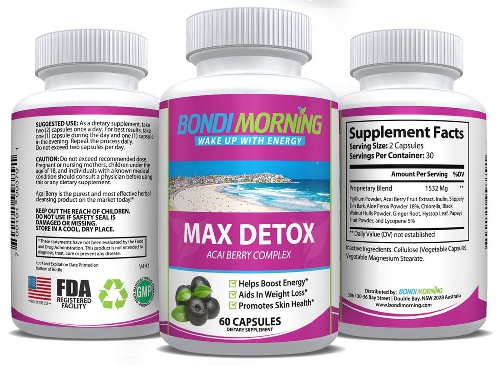 Max Detox Dietary Supplement - Promotes Colon Cleansing & Removes Toxins About the product DISCOVER THE MOST EFFICIENT WAY TO SUPPORT YOUR HEALTH NATURALLY! – If you are looking for a high-quality dietary supplement to support your health and detoxify your body, then the Bondi Morning Max Detox premium dietary supplement is here to make your life easier and healthier! 100% NATURAL INGREDIENTS FOR MAXIMUM RESULTS! - Our new, advanced and safe formula contains some of nature’s most powerful detoxifiers, such as Acai Berry, Papaya and Ginger Root, which have been widely used for their cleansing and health-boosting powers. FEEL ENERGIZED, LIGHTER & HEALTHIER WITH A SINGLE CONVENIENT CAPSULE! – The Bondi Morning Max Detox herbal and easy-to-swallow capsules contain no GMO’s, fillers or preservatives and will improve your immune system, offer relief from constipation and bloating while promoting skin health naturally. REMOVE HARMFUL TOXINS & TURBO-CHARGE YOUR METABOLISM TODAY! – The 100% natural ingredients will help you lose weight as well as maintain a healthy weight. Experience increased mental function and enhanced focus while removing harmful toxins form your body with our natural detoxifying supplement. WAKE UP WITH ENERGY EVERY SINGLE DAY! – The Bondi Morning elite USA-made dietary supplements are produced with great attention to detail in FDA-registered facilities. Our goal is to help you improve your lifestyle and wake up every morning feeling energized and rejuvenated, just like waking up in the heavenly Bondi beach in Australia! Now’s The Time To Remove Harmful Toxins From Your Body & Support Your Health & Well-Being! Are you trying to lose weight but never see any results? Do you want to cleanse and detoxify your body naturally? Looking for a healthy, potent and metabolism-boosting dietary supplement? Presenting The Bondi Morning Premium Max Detox Cleansing & Detoxifying Dietary Supplement! Finally, you can start enjoying your day to the fullest without having to worry about bloating, IBS, constipation or low energy levels. Our safe and hypoallergenic Max Detox capsules are here to promote healthy colon cleansing, relieve gas and bloating while supporting your immune system and encouraging skin health! Nature’s Most Potent Detoxifying Ingredients In A Single Convenient Capsule! The Bondi Morning new and advanced formula contains 100% natural, healthy and powerful ingredients known for their beneficial effects: • Acai Berry – the South American super-fruit which helps regulate high cholesterol levels, promotes younger-looking skin and improves digestion • Papaya – known to support a healthy cardiovascular system, assist in cleansing the body of toxins and promote faster recovery after sports injuries • Ginger Root – aids in eliminating gastrointestinal distress, protects against harmful micro-organisms and helps prevent colon-related problems The Bondi Morning Happiness Guarantee! Above all, we at Bondi Morning, want to put a smile on your face! That’s why our healthy and 100% natural dietary supplements are created by health experts in FDA-registered facilities in the USA. In the improbable case that you are not 100% satisfied with our natural Max Detox supplement, we will offer you a full refund, no questions asked! Why Hesitate? Indulge Yourself! Click “Add To Cart” Now! Max Detox Dietary Supplement - Promotes Colon Cleansing & Removes Toxins 3 Bottles About the Product Discover the Most Efficient Way to Support Your Health Naturally! – If you are looking for a high-quality dietary supplement to support your health and detoxify your body, then the Bondi Morning Max Detox premium dietary supplement is here to make your life easier and healthier! 100% Natural Ingredients for Maximum Results! - Our new, advanced and safe formula contains some of nature’s most powerful detoxifiers, such as Acai Berry, Papaya and Ginger Root, which have been widely used for their cleansing and health-boosting powers. Feel Energized, Lighter & Healthier with a Single Convenient Capsule! – The Bondi Morning Max Detox herbal and easy-to-swallow capsules contain no GMO’s, fillers or preservatives and will improve your immune system, offer relief from constipation and bloating while promoting skin health naturally. Remove Harmful Toxins & Turbo-charge Your Metabolism Today! – The 100% natural ingredients will help you lose weight as well as maintain a healthy weight. Experience increased mental function and enhanced focus while removing harmful toxins form your body with our natural detoxifying supplement. Wake up with Energy Every Single Day! – The Bondi Morning elite USA-made dietary supplements are produced with great attention to detail in FDA-registered facilities. Our goal is to help you improve your lifestyle and wake up every morning feeling energized and rejuvenated, just like waking up in the heavenly Bondi beach in Australia! Here’s How You Can Remove Harmful Toxins from Your Body & Support Your Health! If you are looking for a healthy, natural and proven way to flush away harmful toxins from your body, boost your energy levels and support your weight loss efforts, then you should look no further. We have created a unique blend of active herbal ingredients that will not only support your well-being, but also help protect your body from free radicals and toxins. Bondi Morning Max Detox Dietary Supplement – Your Natural Protection! When it comes to alleviating IBS, constipation or bloating, Max Detox is the healthiest and most natural alternative. Our blend of potent botanical ingredients will help relieve the symptoms of gas and bloating while cleansing your colon and improving your digestion. Feel Healthier, Stronger & More Energized! Every single non-GMO capsule contains essential herbal ingredients that may help boost your energy levels, regulate cholesterol levels in your blood and eliminate gastrointestinal distress. As a result, you will fee