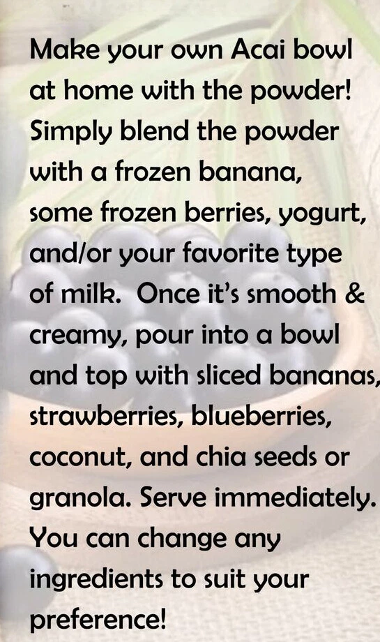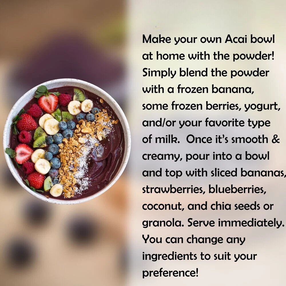Condition:New: A brand-new, unused, unopened, undamaged item. See the seller's listing for full details Main Purpose:Cardiovascular Health, Brain & Nervous System Health, Bone & Joint Health, Cholesterol Support, Cleansing & Detoxification, Diabetes Support, Digestive Support, Eye Health, Energy Support, Heart Health, Immune Support, Hormone Support, Memory Support, Liver Health Form:Powder Ingredients:Acai Berry UPC:035239054050 MPN:Does Not apply Flavor:Berries Brand:HELLOYOUNG Active Ingredients:Acai Berry, Açaí Berry Department:Unisex, Teens Type:Antioxidant Formulation:Powder Type of Diet:Ayurvedic, Non-Vegetarian, Kosher, Halal, Vegan, Vegetarian Number of Pills:Powder Features:Organic Country/Region of Manufacture:Brazil Supplement Purpose:Antioxident Nutrition Facts Label:Yes eBay Organic Freeze Dried ACAI Berry Powder is All Natural 1.1 (17.6 oz. / 500 grams) Freeze Dried is the best way to get the most nutrients from this wonderful superfruit! Freeze Drying is a cool drying process that preserves the vitamins, minerals, antioxidants, and the beneficial nutrients in the Acai Berry. This process preserves almost all the delicate, beneficial ingredients of the Acai berry. Made from the Acai Berry Fruit with nothing added. Suggested Use: Mix about 1 1/2 tsp. of powder into juice, smoothies or your favorite drink.You may also sprinkle over yogurt, cereal or just about anything, or use for baking. Also great for making Acai Bowls.