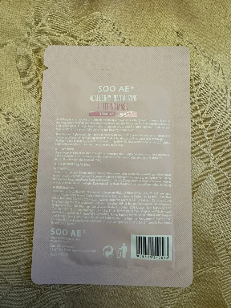 Acai Berry Revitalizing & Restorative Sleeping Face Mask 12 Pack.