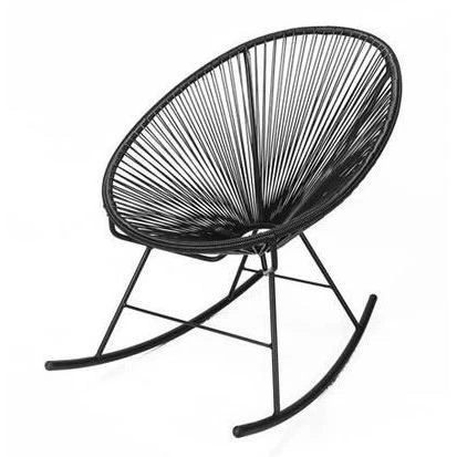 Sit back and relax in this Acapulco rocking chair. Featuring a unique, distinctive design to enliven your interior decor, this fashionable rocking chair has a metal frame and legs for sturdy support, and the PVC wicker seating provides a comfortable spot to rock away your worries.Chair Type: Rocking ChairsMaterial: PVC Wicker, MetalAssembly: Assembly RequiredChair Back Height: StandardSeats Up To: 1Color: BlackSize: Single Free Shipping Over $49.99* Details Acapulco Black Metal-frame Rocking Chair Product Description: Sit back and relax in this Acapulco rocking chair. Featuring a unique, distinctive design to enliven your interior decor, this fashionable rocking chair has a metal frame and legs for sturdy support, and the PVC wicker seating provides a comfortable spot to rock away your worries. Chair TypeRocking Chairs MaterialPVC Wicker, Metal AssemblyAssembly Required Chair Back HeightStandard Seats Up To1 ColorBlack SizeSingle