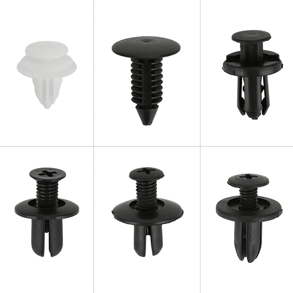 - These clips fasteners are made of nylon material suitable for car use durable and long service life. - Cars good accessory, commonly used for fitting side skirts, bumpers and other trim. - Push Type Retainer Kit came with a nice plastic box for easier to pick a type of retainer that you want to use. - Need not worry about lost or damaged body fasteners.All the necessary retainers for exact replacement of old and broken retainers. Note: All vehicles have a range of different clips used on them. Different models have different sizes and there are no universal clips. Please check as much as possible before buying. Package including 100pcs Clips + 1 Plastic Box Clip of C05 Screw Type Clip Retainer Rivet Condition: Brand New Material: Black Nylon Size Approx: Head Diameter: 15mm Stem Length: 12mm Fits Into 6mm Hole For GM Replace 20426301 For Mazda Replace 9926-50-625 For Toyota Replace 90467-06017 For Toyota Replace 90467-06017-20 For Toyota Replace 90467-06017-41 For Auveco A14260 Clip of C20 Fender Liner Clip Splash Shield Blind Rivet Fits For Mazda Replace FB01-56-964 Fits For Honda Replace 90675-SB3-003 Fits For Nissan Replace 63876-95596 Fits For B16 B18 B18C B20 H22A EK9 EG6 Fits For Accord Civic Prelude CR-V Del Sol CRX Fits For INTEGRA GSR S2000 AP1 MUGEN Fits For TYPE R Si Condition: Brand New Material: Black Nylon Size Approx: Head Diameter: 20.6mm (0.81") Stem Length: 9.5mm (0.37") Fits Into 8mm (0.32") Hole For Auveco A16000 Clip of C32 Push-Type Retainer Black Nylon Head Diameter: 20mm Stem Length: 13mm Fits Into 8mm Hole Fits For Mazda 6 2002-2006 Fits For Mazda 323 1998-2003 Fits For Ford Aspire Fits For Mazda Replace B092-51-833 Fits For Ford Replace MB-455-56143 Fits For Kia Replace MB455-56-143 Fits For Nissan Replace 09409-09302 Fits For Hyundai Replace 86590-28000 For Auveco A17632 Clip of B01 Front & Rear Bumper Retainer Push Type Clip Condition: Brand New Material: Black Nylon Head Diameter: 20mm Stem Length: 18mm Fits Hole Size: 10mm For Honda Replace 91503-SZ5-003 (1996-On) For Acura Replace 91503-SZ5-003 For Auveco A20564 For PAS9282, PAS938 Clip of D02 Interior Trim Board Retainer Clip White Nylon Top Head Diameter: 13mm Middle Head Diameter: 16mm Bottom Head Diameter: 18mm Stem Length: 15mm Stem Diameter: 8.5mm x 8.5mm Overall Length: 20mm Fits For GM Replaces 94858299 Fits For Geo Prizm 1998-On Fits For Pontiac Vibe 1998-On Fits For Toyota Replaces 90467-10161 Fits For Sienna, Solara & Tercel 1990-On Fits For Previa 2007-On, Corolla 2003-On Fits For Lexus LS460, LS460L 1990-On For Auveco A18876 Clip of A16 Radiator Yoke, Fender & Bumper Shield Retainer Christmas Tree Type Clip Black Nylon Head Diameter: 17.8mm Stem Length: 20mm Stem Diameter: 7.6mm For GM Replaces 1595864, 1605396 For Ford Replaces 388577S For Ford Replaces W705589-S300 For Chrysler Replaces 6030441 For Auveco A11146, A15414
