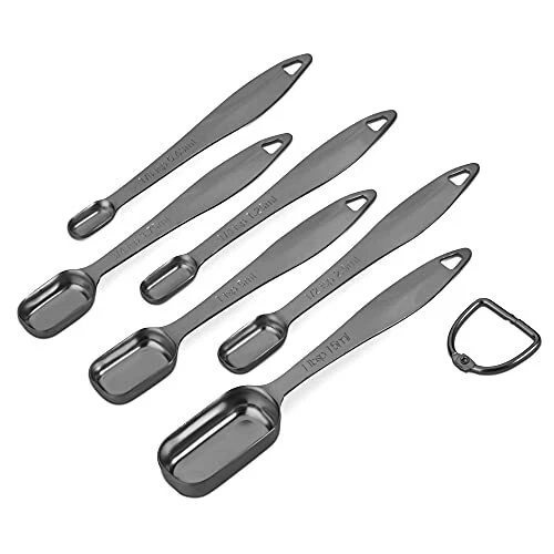 Accurate 18/8 Stainless Steel Measuring Spoons, Heavy Duty Good Handle Set of 6 Measuring Spoon with Ring Connector, Dark Grey 18/8 stainless steel durable contruction. Dark grey finish. Engrave US metric Measurement. Fit easily into narrow spice jars and tins. Contains 6 spoons: 1/8 tsp, 1/4 tsp, 1/2 tsp, 3/4 tsp, 1 tsp, 1 Tbsp and conveniently connected by a O-shape ring. SHIPPING - We offer FREE shipping on all orders! - We ship within 3 business days of payment, usually sooner - We only ship to the lower 48 states, no APO/FPO addresses or PO Boxes allowed International buyers – please note: Import duties, taxes, and charges aren't included in the item price or postage cost. These charges are the buyer's responsibility. - Please check with your country's customs office to determine what these additional costs will be prior to bidding or buying. - We have confidence in our products, but if you are not fully satisfied please contact us within 30 days of purchase and you will get full refund. * Order Cancellation Policy ** You can return a product for up to 30 days from the date you purchased it. 1. The seller reserves the right to cancel the special case only due to eBay cancellation fee. 2. The decision of seller is the final. 3. The seller will respond to the cancellation request within 2 business days. Please wait for the result of cancellation. 4. In case the cancellation is not completed by some reasons, the buyer can follow the options below to get the refund. 4.1 The buyer can reject the item when it arrives. 4.2 The buyer can send the item back to the seller within 30 days If the buyer receives item (USA Shipment ONLY). The seller will provide the FREE return label to the buyer when the buyer opens " Return Item" case on eBay by using the reason as "Change my mind" ONLY. 5. When buyer has placed the order. The order will be processed and completed by automatic warehouse system within 5 minutes. In case that buyer sends the cancellation request after 5 minutes of placing the order, the request will be rejected. **Sending direct message to cancel the order is not allowed for every case.* Return Policy For the return case - If buyer would like to return the items for refund or replacement, please CONTACT SELLER to receive the free return label from seller. The refund or replacement will be processed with the tracking number of return label which is provided by seller only. The other ways of return which are not approved by seller will not be processed for the refund or replacement.