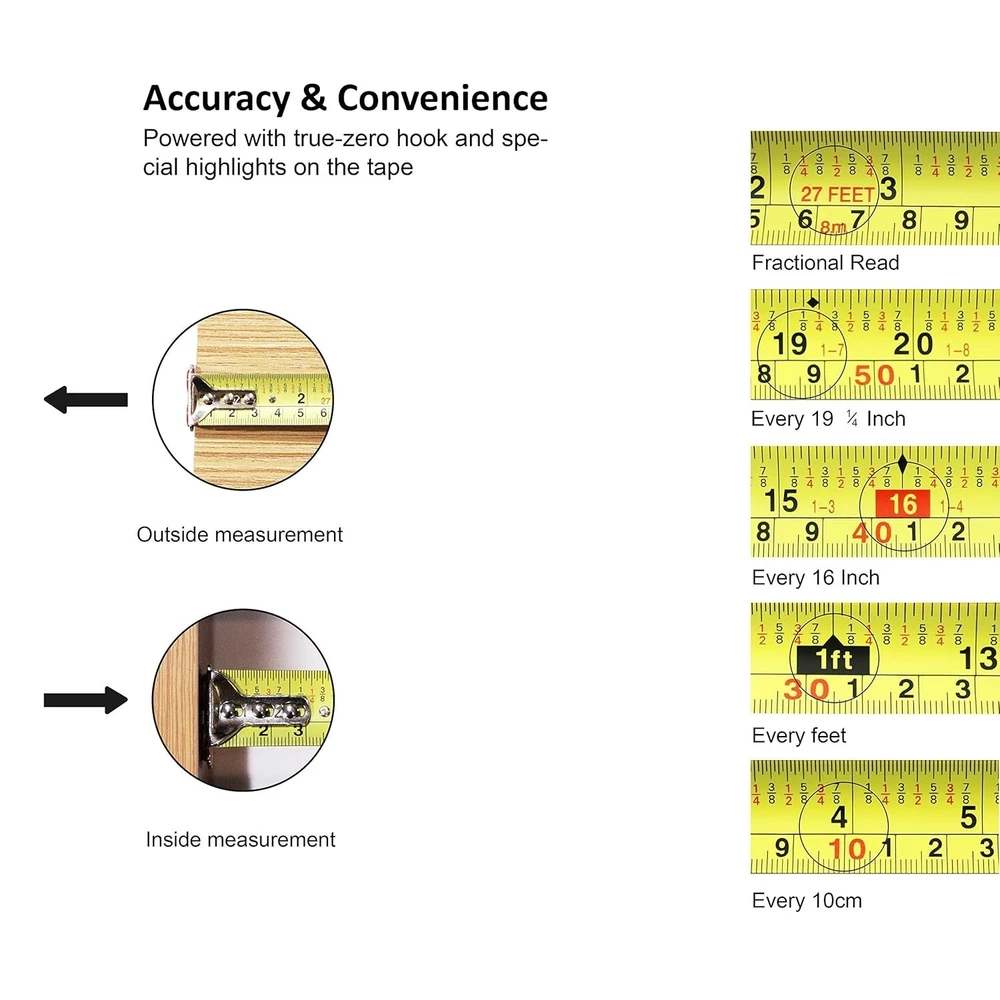 Accurate 26ft Measuring Tape with True Zero & Lifetime Warranty Feature ‹ › ‹ › ‹ › ‹ › ‹ › ‹ › ‹ › ‹ › ‹ › ‹ › ‹ › Accurate 26ft Measuring Tape Experience precision like never before with our premium grade measuring tape, featuring True Zero technology and an extraordinary lifetime warranty. Key Features: Premium Grade Construction: This robust and flexible measuring tape measures 8m long, 25 mm wide, and 0.15mm thick. It's impact resistant, rust proof, and chemical odor-free, ensuring it stands up to any task. Exceptional Reach: Capable of extending horizontally up to 7ft and vertically up to 13ft without collapsing or snapping, offering the reliability you can trust. Versatile Magnetic Hook: The powerful magnetic tip allows the tape to adhere to any ferrous material, enhancing stability while measuring long distances. This feature also lets you employ the tape as a magnetic pick-up tool, making it indispensable for engineers, architects, and DIY enthusiasts. True Zero Accurate Measurement: Measurement uncertainty is controlled within ±0.2mm. The unique design of the retractable magnetic claw allows for accurate inside measurements by deducting its own thickness. Comfortable Grip: With a soft rubberized cover and contoured shape, this measuring tape fits comfortably in your hand, setting a new standard for ease of use. Lifetime Warranty: Enjoy peace of mind knowing that all tools are guaranteed to be free from defects in materials and workmanship for life. Return or replace with ease, simply by providing your original purchase receipt. Why Choose Our Measuring Tape? If you're searching for a measuring tape that combines durability, precision, and comfort, look no further. Our Accurate 26ft Measuring Tape offers superior features and reliable performance. It's more than a tool; it's an essential companion for every project, home improvement, and professional job. Elevate your measuring experience today—order your Accurate 26ft Measuring Tape now! Shipping Free & Fast Shipping - We offer free shipping to most of the USA with a normal delivery time of 3-7 days. However, due to the current situation, additional delivery time (up to 3 weeks) may be required for some items. Alternative Carriers - We may use alternative carriers (e.g. USPS, FedEx, UPS, etc.) to ensure your package arrives safely and on time. Due to the use of multiple carriers, we are unable to provide a tracking number automatically. Handling Time - Orders are processed and shipped within 1-2 business days of receiving cleared payment. Shipping Restrictions - Shipping to Alaska, Hawaii, Puerto Rico, Guam, and other US territories may incur shipping charges or delivery restrictions. Please contact us before ordering, or your order can be refunded/cancelled. State Restrictions - There may be restrictions based on your state of purchase. For example, certain items may not be shipped to California due to state regulations. Contact for Tracking Updates - If you require tracking updates or have any concerns about the delivery of your order, please feel free to contact us, and we will be happy to assist you. Return 30-Day Hassle-Free Returns - We want you to be completely satisfied with your purchase. If you are not, you can return the item within 30 days of receiving it for a full refund or exchange. Easy Return Process - To start a return, simply contact us and we will provide you with a prepaid return shipping label and detailed instructions. Restocking Fee - There are no restocking fees for returns. However, the buyer is responsible for return shipping costs if the return is not due to a seller's error. Refund Processing Time - Refunds will be processed within 5 business days of receiving the returned item in its original condition. Payment We accept all major credit cards, PayPal, and Apple Pay for your convenience. Your payment information is secure and encrypted to ensure a safe and seamless transaction. Please complete your payment within 3 days of purchase to avoid any delays in shipping. Feedback Your feedback is extremely important to us. We strive to provide the best products and customer service possible. If you are satisfied with your purchase, please take a moment to leave us a positive review. If you have any concerns or issues with your order, please contact us before leaving negative feedback. We are committed to resolving any problems and ensuring your satisfaction. Contact Us If you have any questions or concerns, please feel free to reach out to our customer support team. You can contact us through the eBay messaging system. We are available Monday to Friday, 9:00 am to 5:00 pm EST, and we will do our best to respond to your inquiry within 24 hours. Buy it now and enjoy a pleasant shopping experience! UPC: Not Set Model: Measuring Tape Item Width: Measuring Tape Item Height: Measuring Tape Item Diameter: 0.98 Item Weight: 0.41 kilograms Unit Quantity: 1 Material: Metal,Plastic Features: Flexible,Magnetic,Retractable,Magnetic Tip Hook,Shock Absorbent Case,Impact Resistant,Rust Proof,Chemical Odor Free,True Zero Measurement,Double Sided,Easy-to-Read,Powerful Magnet Tip Brand: Unbranded Type: Measuring Tape Tape Length: 26 ft System of Measurement: Metric/Standard Color: Red Item Length: Not Set Country/Region of Manufacture: Not Set Manufacturer Warranty: Lifetime MPN: Not Set Unit Type: ft Personalize: Not Set