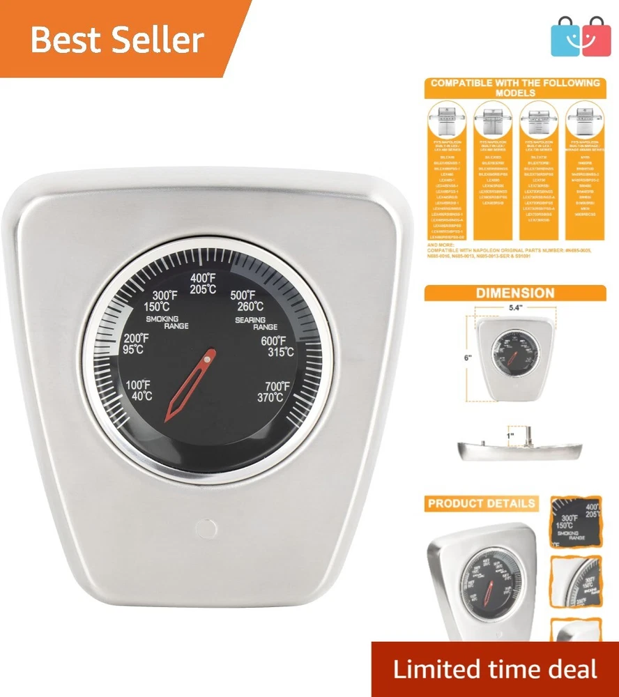 Accurate 7.25" Replacement Temperature Gauge for Napoleon Grills - Waterproof ‹ › ‹ › ‹ › ‹ › ‹ › ‹ › ‹ › ‹ › ‹ › Accurate 7.25" Replacement Temperature Gauge Enhance your grilling experience with our waterproof replacement temperature gauge, specifically designed for seamless integration with Napoleon grills. Compatibility: Perfect replacement for Napoleon LEX Series grills and many models including: LEX 485, LEX 605, LEX 730, and more—check below for specific models! Compatible with BUILT-IN MIRAGE and LEX series parts. Premium Quality Construction: Fabricated from high-quality stainless steel for longevity and precision. Designed for accurate temperature monitoring to elevate your cooking. Enhance your grilling journey with trustworthy readings every time. Waterproof Durability: Engineered to withstand outdoor conditions—rain or shine. Don't let the elements ruin your grilling plans with this dependable gauge. Why Choose Our Replacement Temperature Gauge? Discover the joy of precise grilling with our accurate 7.25" replacement temperature gauge. Uncompromised by weather conditions, this thermometer is the essential tool for achieving perfect results every time you fire up the grill. With compatibility across a wide range of Napoleon grill models, you can confidently replace your old gauge and enjoy expertly monitored cooking sessions. Don't settle for less—select a temperature gauge that guarantees precision and durability. Order yours today and elevate your grilling game! Shipping Free & Fast Shipping - We offer free shipping to most of the USA with a normal delivery time of 3-7 days. However, due to the current situation, additional delivery time (up to 3 weeks) may be required for some items. Alternative Carriers - We may use alternative carriers (e.g. USPS, FedEx, UPS, etc.) to ensure your package arrives safely and on time. Due to the use of multiple carriers, we are unable to provide a tracking number automatically. Handling Time - Orders are processed and shipped within 1-2 business days of receiving cleared payment. Shipping Restrictions - Shipping to Alaska, Hawaii, Puerto Rico, Guam, and other US territories may incur shipping charges or delivery restrictions. Please contact us before ordering, or your order can be refunded/cancelled. State Restrictions - There may be restrictions based on your state of purchase. For example, certain items may not be shipped to California due to state regulations. Contact for Tracking Updates - If you require tracking updates or have any concerns about the delivery of your order, please feel free to contact us, and we will be happy to assist you. Return 30-Day Hassle-Free Returns - We want you to be completely satisfied with your purchase. If you are not, you can return the item within 30 days of receiving it for a full refund or exchange. Easy Return Process - To start a return, simply contact us and we will provide you with a prepaid return shipping label and detailed instructions. Restocking Fee - There are no restocking fees for returns. However, the buyer is responsible for return shipping costs if the return is not due to a seller's error. Refund Processing Time - Refunds will be processed within 5 business days of receiving the returned item in its original condition. Payment We accept all major credit cards, PayPal, and Apple Pay for your convenience. Your payment information is secure and encrypted to ensure a safe and seamless transaction. Please complete your payment within 3 days of purchase to avoid any delays in shipping. Feedback Your feedback is extremely important to us. We strive to provide the best products and customer service possible. If you are satisfied with your purchase, please take a moment to leave us a positive review. If you have any concerns or issues with your order, please contact us before leaving negative feedback. We are committed to resolving any problems and ensuring your satisfaction. Contact Us If you have any questions or concerns, please feel free to reach out to our customer support team. You can contact us through the eBay messaging system. We are available Monday to Friday, 9:00 am to 5:00 pm EST, and we will do our best to respond to your inquiry within 24 hours. Thank you for supporting our small family business! UPC: Not Set Unit Quantity: 1 Set Includes: Temperature Gauge Features: Reusable,Waterproof,Durable,Precise Temperature Monitoring,Easy to Clean Type: Temperature Gauge Brand: Unbranded Color: Silver Number in Pack: 1 Handle Material: Stainless Steel Head Material: Stainless Steel Size: Medium Item Weight: 0.5 lb Finish: Polished Country/Region of Manufacture: Not Set Item Height: Not Set Item Width: Not Set Year Manufactured: Not Set Manufacturer Warranty: Not Set Model: Not Set Style: Modern Number of Items in Set: One-Piece MPN: Not Set Unit Type: Unit Personalize: Not Set