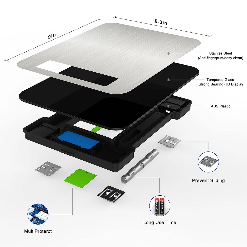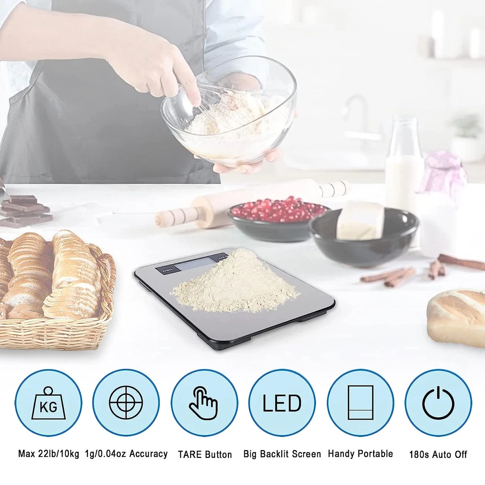 Menu Other Items Feedbacks About Us Contact Us Add To Favorites Accurate Digital Food Weight Scale at Kitchen Water Proof Scale Weight Balance ✅【MULTIPLE USES】 This Food Scale Built with High Precision Sensor System, Provides You with Instant and Accurate Results from 1g to 10kg. Can be Food Scale Used as Flour, Used as Digital Scale for Fruits, As kitchen Scale for Milk, As Gram Scale for Coffee. ✅【7 DIFFERENT MEASUREMENTS】 The Food scale includes all the necessary unit measurements for you easy weight translations, convert measurement between in g/oz/lb/tl/kg/ml/milk ml. Convenient for you to choose the proper unit by pressing the mode button. ✅【EASY TO CLEAN】 The placement surface of the kitchen scale is waterproof, which is convenient for you to clean the food scale surface frequently. To ensure the best performance and food safety, please clean the equipment after each use of the digital scale, because bacteria tend to accumulate. ✅【COMFORTABLE SIZE】 Different from the small size of other food scales on the market, our kitchen scale has a 9"x6.3" working area. It can prevent the container from blocking the LCD screen, making it easier for you to obtain food weight information. ✅【EASY TO USE】The food scale for kitchen uses highly sensitive touch buttons to accurately weigh food in only three steps. If you are not completely satisfied with the kitchen scale you purchased, please feel free to contact us. We provide 100% refund and free replacement cycle service, so you have no worries. Product Description Food Scale Item Specification EASY TO CLEAN waterproof Feature 7 DIFFERENT MEASUREMENTS Item model number 818-1 Color Black Product Dimensions 8.66"L x 6.5"W x 0.79"H Material P Weight Limit 248 Pounds Batteries 2 AAA batteries required. (included) Manufacturer Hengmei Electrical company Brand Edousin Size 22lb Dimensions Shipping Returns Additional Info Product Dimensions: 6.5 "h x 8.66 "h x 0.79 "h. Weight: 248.0 lb Fast shipping is very important for us. Our standard shipping service is FREE. Your order will be shipped within 1-3 business days upon full payment received. Most items are delivered within 3-5 business days, however, please allow 3-10 business days. We are shipping only to USA. We only ship to the confirmed Paypal address. We reserve the right to cancel any order for any reason at any time. We are not responsible for undeliverable addresses. We offer a 30 day return policy from checkout winning date. Your satisfaction is guaranteed! If for any reason you are unhappy with your item, just return it within 30 days for a full refund, minus shipping cost. Please contact us prior to initiating a return so that we can issue you a refund authorization. Items defective upon receipt must be packaged in their retail packaging as if new and returned with a detailed description of the problem. Return shipping fees are not refundable. We reserve the right to decline any returns if the above guidelines are not followed. All of our items, unless otherwise stated, will only run on 120 volts. Please check to make sure your country complies with these specifications. If you have a problem or question regarding your transaction please contact us before leaving any type of feedback. We will work with you to resolve any problem you may have.